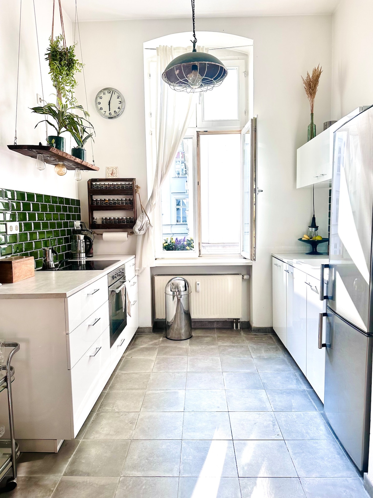 Welcome to this spacious and elegant private suite in the historic heart of Berlin, just a short walk from the city’s most important landmarks, excellent restaurants, and vibrant shopping areas. Enjoy complete privacy, peaceful garden views, quiet sleep, and refined modern comfort. Floor to ceiling windows fill the space with natural light, while a luxurious king size bedroom, a high-end kitchen, and a sleek bathroom with a rain shower and bathtub create a calm retreat in the middle of the city.