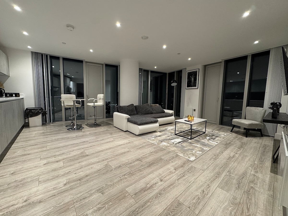 Discover contemporary living in this spacious two-bed apartment, ideal for business travellers, couples, and families! Enjoy riverside views and a private terrace. The open-plan living area features a fully equipped kitchen & sleek décor. Free parking, two plush beds, high-speed WiFi, a dedicated workspace, and a huge 80-inch TV! Located just moments from Chapel Street’s top restaurants, cafes, and cultural sites, this apartment offers comfort and convenience for your stay in Manchester.