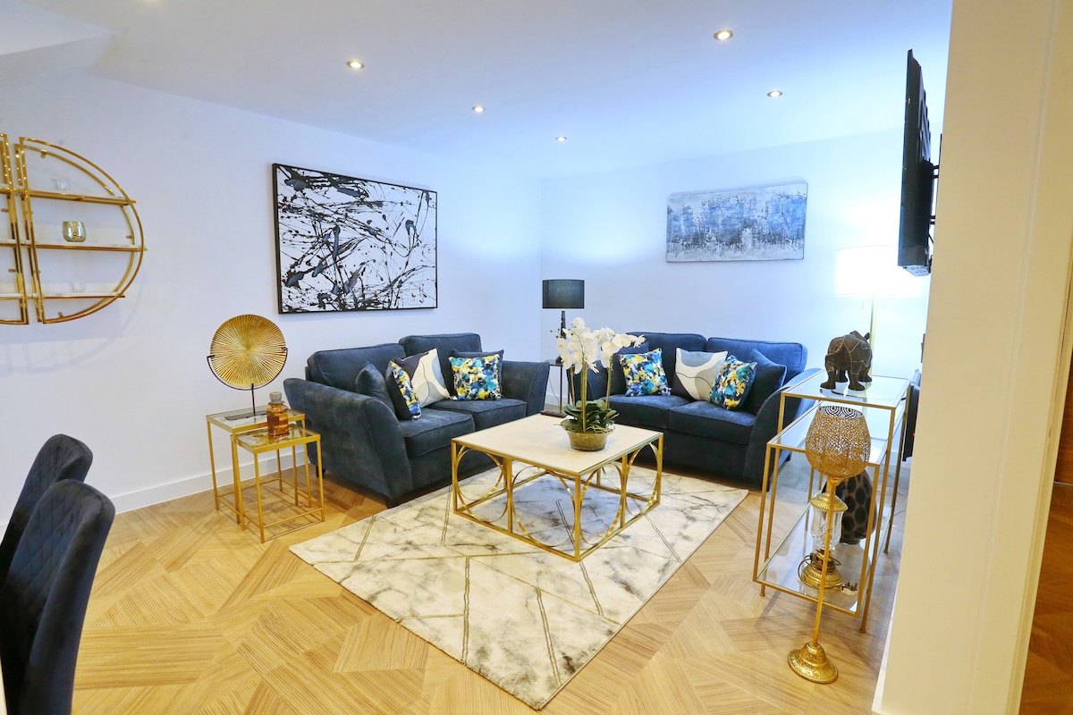 Luxury flat in centre of Poynton. Only 10 minutes from Manchester airport and a short walk to railway station offering good links to Manchester (20 mins) and London. Easy access to M56 and M60 motorways and beyond. Poynton is a bustling ‘village’ on the edge of Cheshire and close to The Peak District. Located centrally, the flat has numerous bars, restaurants and shops (including 3 supermarkets) right on its doorstep. Easy access to Middlewood Way, The Macclesfield Canal and Lyme Park.