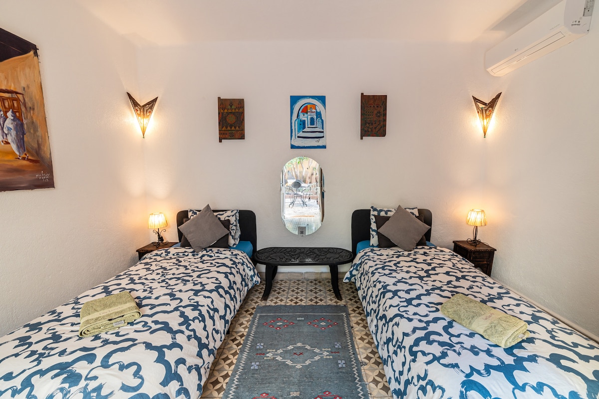 Welcome to our stunning studio Located in Chefchaouen’s old town, this open villa blends modern, historic, and African design. The studio features WiFi, a private bathroom with shower, and two single beds, ideal for friends, couples, or solo travelers. Enjoy stunning views of the garden and city, a peaceful garden space, and the convenience of nearby river access and parking. A perfect, stress-free retreat to experience the charm and culture of Chefchaouen. Experience the magic of Chefchaouen.