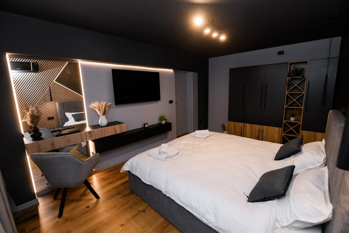 PNT Apartment - Eleganță și Confort în Inima Alba Iuliei Descoperiți rafinamentul la PNT Apartment, situat la 10 min de mers pe jos de Cetatea Alba Iulia. Spațiul modern și confortabil, dormitorul Super King, baia elegantă și bucătăria funcțională vă oferă o experiență de neuitat. WiFi rapid, parcare privată și acces facil la atracțiile locale fac acest apartament locul ideal pentru explorarea Transilvaniei. Rezervați acum pentru o ședere plină de eleganță și relaxare!