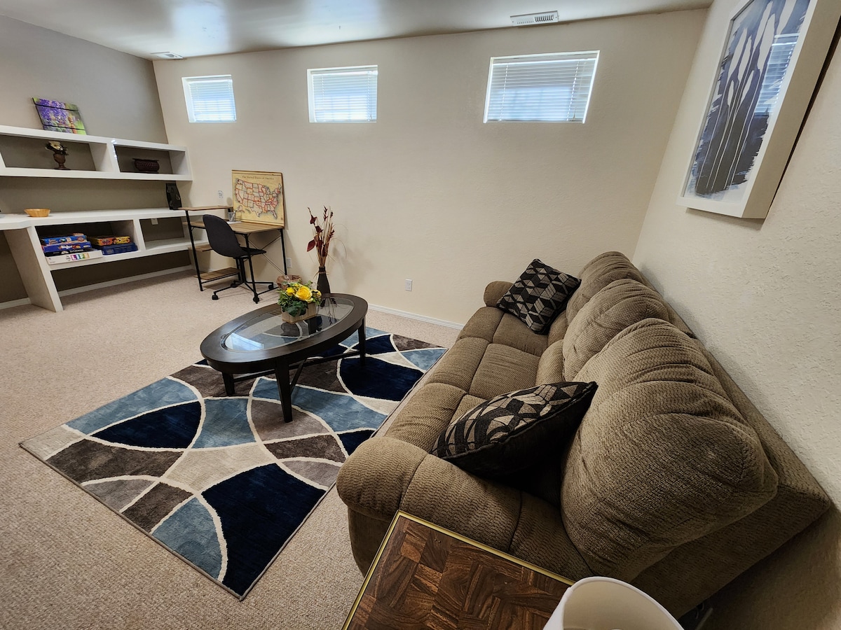 The ground level of our home is awaiting your visit. Right out of your door is a Hot Springs Hot Tub, outdoor seating and expansive views of our surrounding mountains. Enjoy the peace and quiet of our country setting with your morning cup of coffee. 5-minute drive to Downtown Leavenworth Bavarian shops and activities. Sanitized keypad entry with no host contact check in.