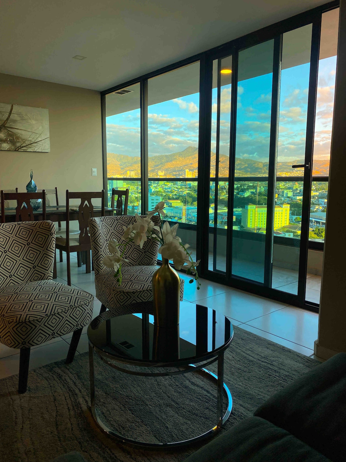 Amplio apartamento ubicado en la zona más exclusiva de Tegucigalpa con vista panorámica a la ciudad. Está cerca de todo lo que necesitas. Malls, restaurantes, bars, coffee shops, Centro Cívico, Embajada Americana, hospitales, bancos y farmacias. Si vienes por trabajo, negocio o vacaciones, éste apartamento es tu mejor opción