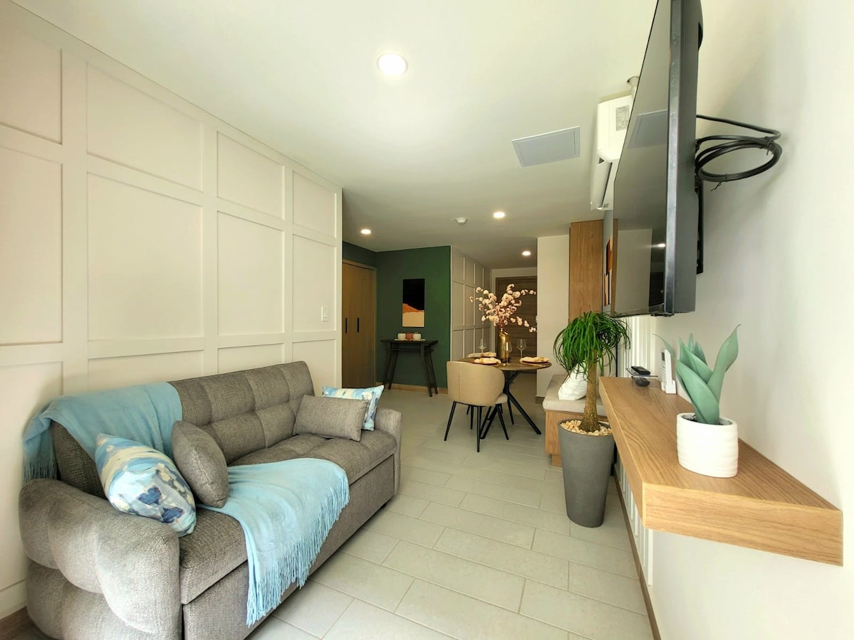 • Furnished terrace + complimentary coffee to unwind • Luxurious and safe apartment • 15 minutes from the U.S. Embassy • 2 bedrooms, each with a private bathroom, blackout curtains, and A/C • Fully equipped kitchen • Free washer and dryer • 3 Smart TVs with Netflix • Ideal location: walk to Multiplaza Mall, banks, and restaurants • Perfect for 4 guests (up to 5: 1 on the sofa) • Pets welcome!