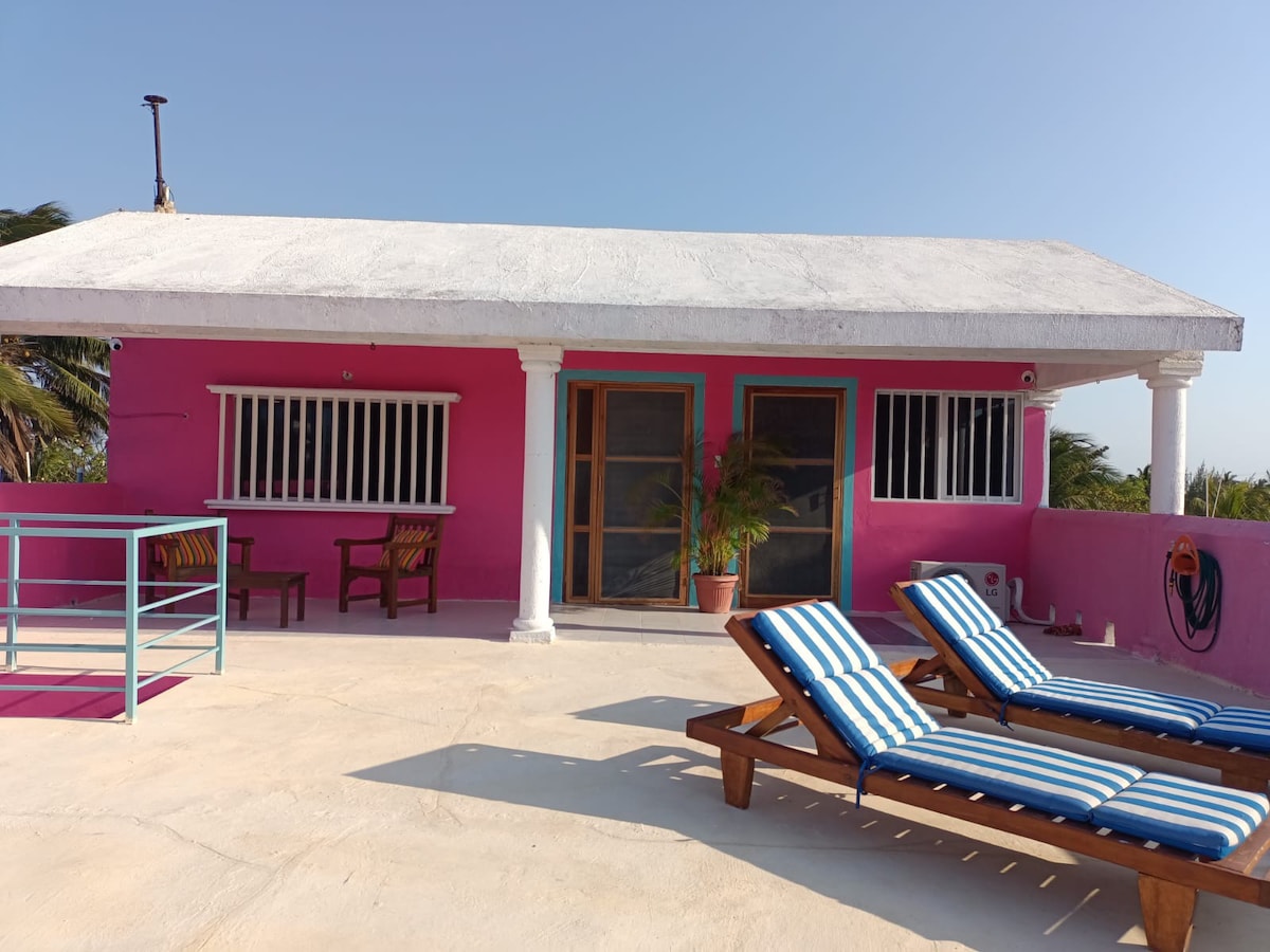 Es una pequeña casa frente al mar con terraza y estacionamiento propio, cuenta con todos los servicios (agua caliente, cocina, wifi, televisión y aire acondicionado) la cual la hace ideal para un fin de semana o estancias cortas. Cuenta con una sala de estar, un dormitorio con su propio baño (tocador independiente), una cama matrimonial, varios hamaqueros y por fuera un pequeño asador y regadera. Se encuentra a escasos minutos de restaurantes de mariscos y tiendas de autoservicio. Petfriendly