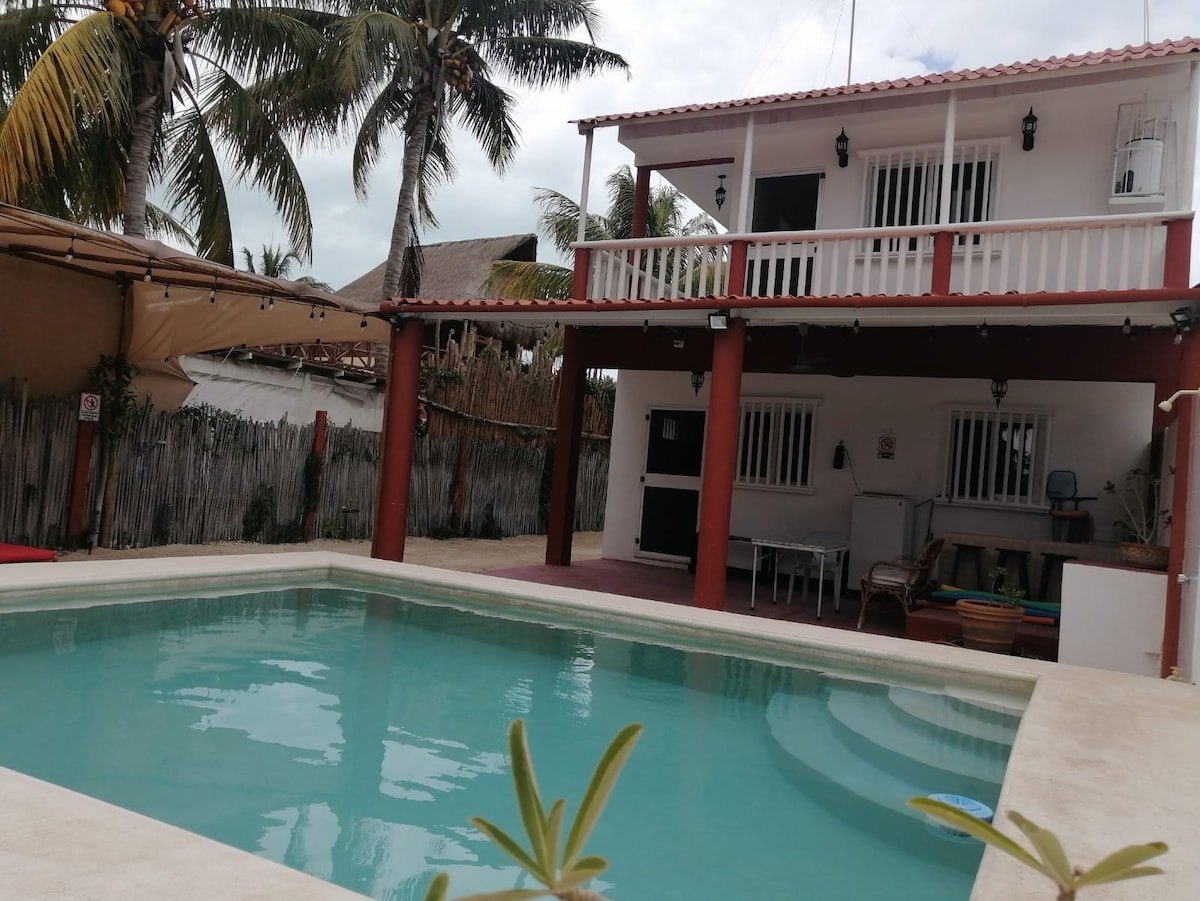 Villa Lujosa decorada vibra "Tulum" con acabados y muebles de lujo. Perfecta para unas vacaciones frente al mar Disfruta la terraza y una pequeña piscina para refrescarte saliendo del mar. Duerme la siesta en una hamaca con una espectacular vista desde la habitación principal y disfruta el sonido de la naturaleza. No cobramos energía eléctrica y tenemos generador de energía para emergencias, así que nunca te quedaras sin energía y sin aire acondicionado, que por cierto tenemos en todos lados :)