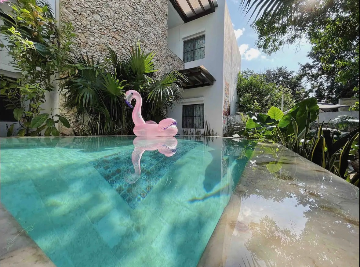 Casa Loto is a unique and tranquil getaway with four furnished apartments. We are 240 metres from the beach and two kilometers from Centro Chelem. The property has a shared swimming pool and outdoor area where you can relax. Four dogs named Cal, Rose, Junior and Mama call Casa Loto home. Maximum six adults. I’m sorry but we cannot accommodate early arrivals. No pets allowed