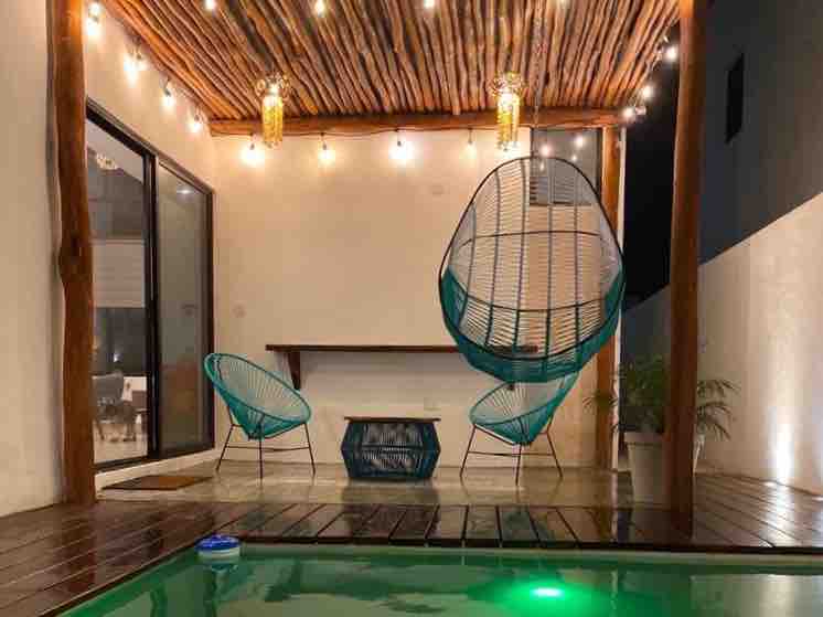 Villa Lujosa decorada vibra "Tulum" con acabados y muebles de lujo. Perfecta para unas vacaciones frente al mar Disfruta la terraza y una pequeña piscina para refrescarte saliendo del mar. Duerme la siesta en una hamaca con una espectacular vista desde la habitación principal y disfruta el sonido de la naturaleza. No cobramos energía eléctrica y tenemos generador de energía para emergencias, así que nunca te quedaras sin energía y sin aire acondicionado, que por cierto tenemos en todos lados :)