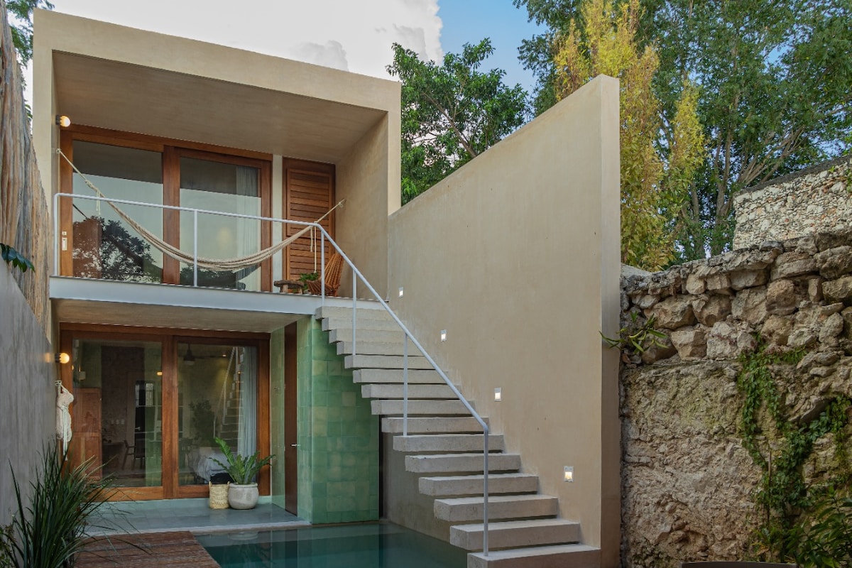 Beautiful restored home just steps from the Gastronomic Corridor and Parque de la Plancha. Perfect for relaxing in the heart of Mérida’s Historic Center, surrounded by the best restaurants, bars, shops, and cultural spots. Just two blocks from Paseo de Montejo, Casa Jade blends architecture, comfort, and style. Enjoy its elegant pool, hammock, and inviting spaces designed for rest. Includes WiFi, Alexa, and TV for a modern and comfortable stay.