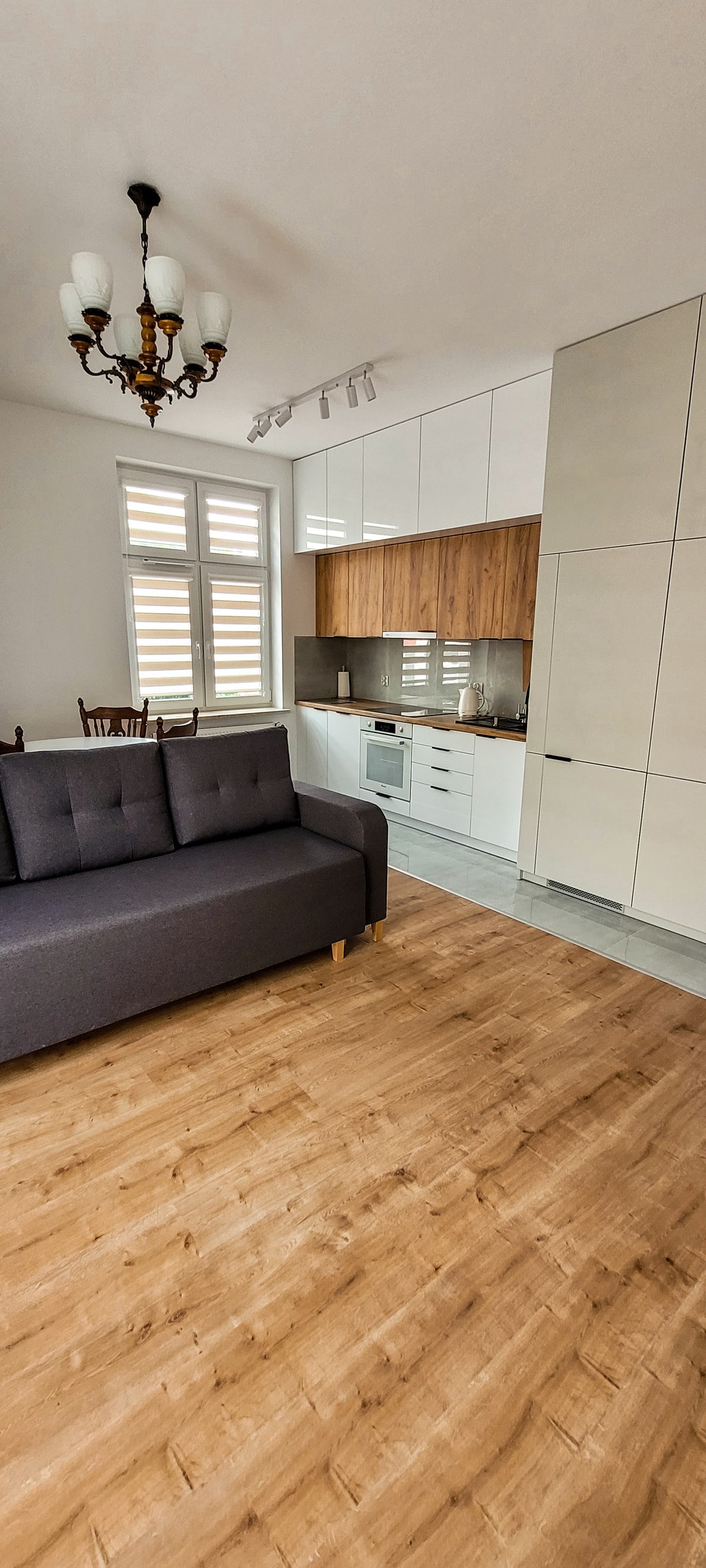 This unique place has a style all its own! Finished to a high standard. The apartment is located on the 3rd floor in a cosy three-staircase block. The apartment is fully equipped with everyday items, high-speed internet. The neighborhood is quiet and peaceful, and the playground in front of the block gives children a place to play carefree. A few meters from the apartment is a bus stop and a railway station.There are also local shops, restaurants, hairdresser, pharmacy and a market in the area.