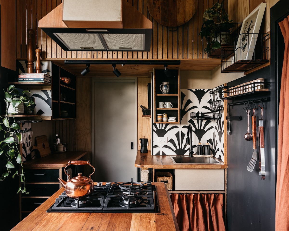 Tiny in size but so much to love, our thoughtfully made off-grid cabin features panoramic winery valley views and unique personal touches making your stay extra special. Take it all in soaking in a warm bath on your own private deck, plus a Queen bed, you are surrounded by nature yet still walking distance to 3 award-winning wineries, a hatted restaurant feat. a wine list of "local stars, international pours and a local bracket of curious jewels". Close to beaches and wild coastal nature areas.