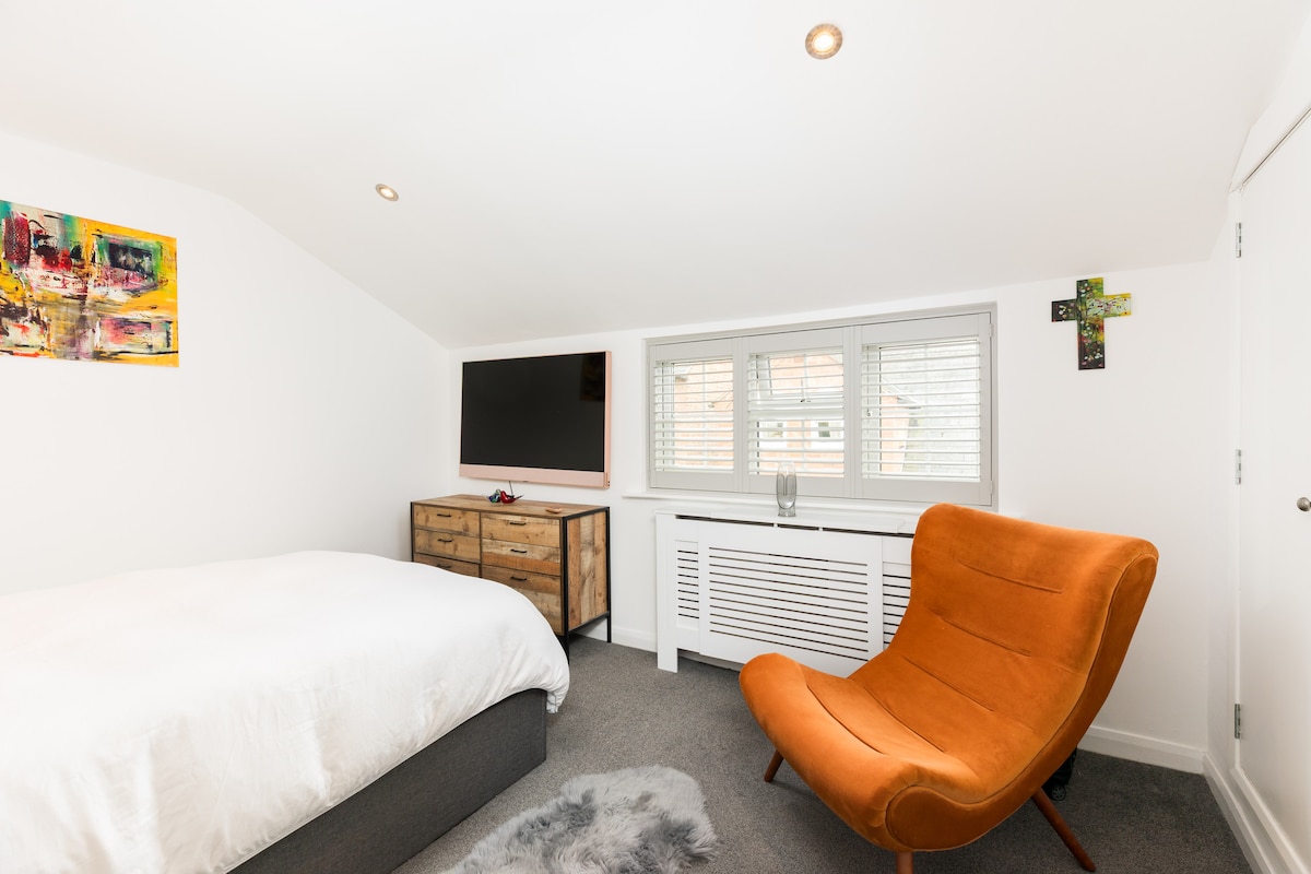 Welcome to our cozy studio in the heart of Cirencester! Nestled in the picturesque Cotswolds, our air conditioned studio is the perfect retreat. With a comfortable bed, tea/coffee facilities, a mini-fridge, microwave and a private bathroom, you'll have everything you need for a relaxing stay. Explore the charming town of Cirencester, known for its historic architecture and vibrant atmosphere, or venture into the stunning countryside. We can’t wait to host you for a memorable stay in Cirencester.