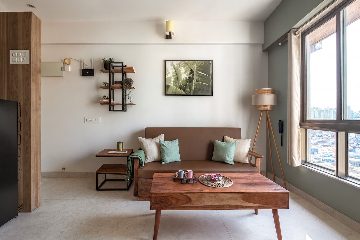 Welcome to Your Modern Day-Chic 1-Bedroom Apartment Retreat near BKC! With its minimalist design, ample workspace, entertainment options, and essential amenities, it caters to the needs of both business and leisure travelers! Features: ★ Large Work-Desk ★ Free High-Speed WiFi ★ Smart TV ★ Tata Sky with all HD Channels ★ Sound Bar ★ Microwave/Fridge ★ Air Fryer ★ Air Purifier ★ Water Purifier Book now and experience the perfect blend of modernity and comfort!