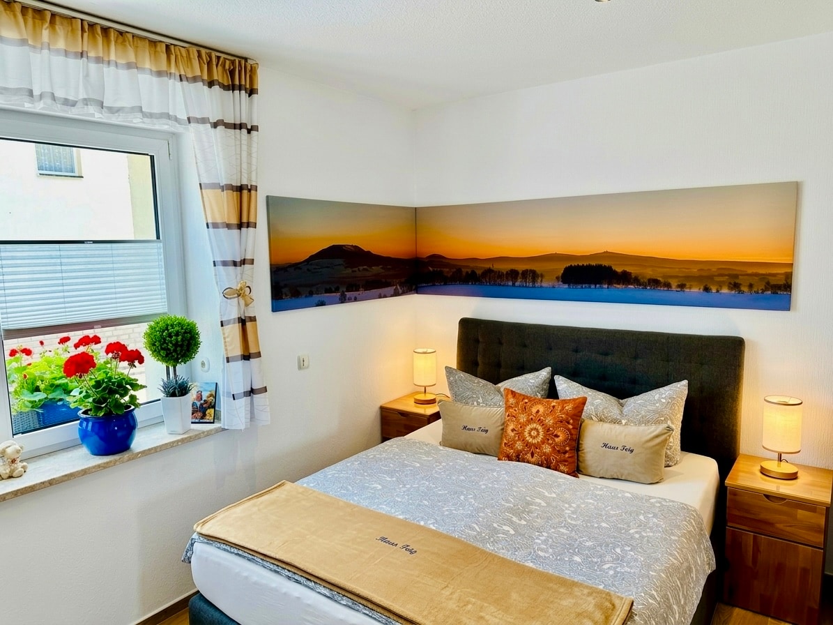 The apartment is set up for 2 people and has underfloor heating for cozy warmth and its own W-LAN network for fast internet. The kitchen is fully equipped with a dishwasher, ceramic hob, oven and a refrigerator with freezer compartment. Fully automatic coffee machine, classic coffee machine, kettle, toaster and plenty of dishes are available. The bathroom has a bathtub and a separate shower. Hairdryers as well as hand and bath towels are available for you. The living area is equipped with a blind and offers a comfortable couch, a large LED TV and a radio with Bluetooth as well as a small selection of books. The comfortable box spring double bed has a bed height of 60 cm. The large garden is surrounded by hedges and bushes and offers seating and a charcoal grill on the terrace with awning. Storage facilities for bicycles or ski equipment are available.