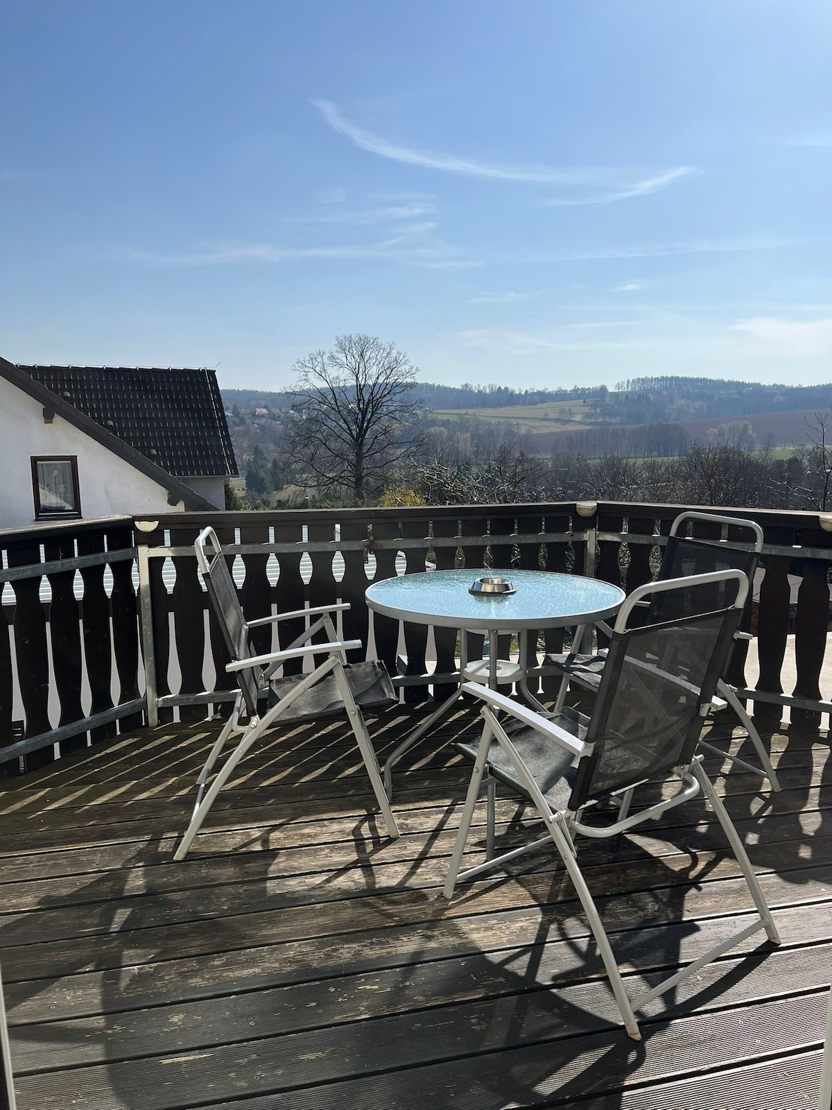 Im Herzen Hainichens gelegen, bietet diese Traumvilla alles, was man für eine entspannte Auszeit benötigt. Mit zwei Schlafzimmern inklusive ausziehbarer Couch bietet die wunderschöne Wohnung im Dachgeschoss mit 110qm Platz für bis zu 6 Personen. Die großzügige Dachterasse mit Blick ins Grüne und auf die Stadt lädt zu gemütlichen Abenden ein. Ein großer Garten mit Sitzgelegenheiten und Aktivitäten für Kinder, sowie ein eigener PKW-Stellplatz im Grundstück stehen zur Verfügung.
