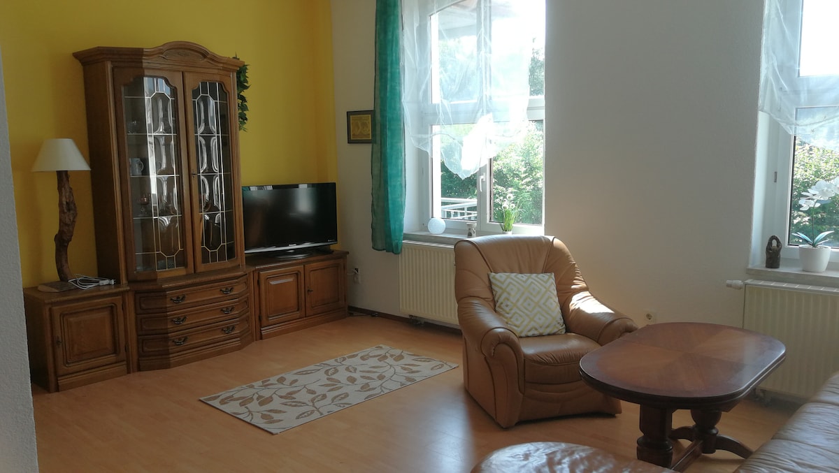 Apartment "Anne" spacious flat in the European Capital of Culture 2025 The Anne vacation apartment is a lovingly privately run accommodation that offers generous comfort for up to four people on 75 m² of living space. For guests arriving by car, the accommodation offers the option of renting a private parking space directly at the house for an extra fee. This guarantees relaxed parking in the center of Chemnitz.