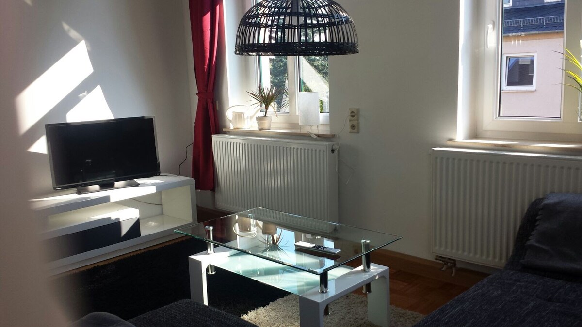 Die komplett sanierte Wohnung befindet sich im Erdgeschoss und verfügt über ein Schlafzimmer mit 2 Betten, ein Wohnzimmer mit einem Sofa, eine Küche und ein Bad. Wir haben wertbeständige alte Möbel im Schlaf- und Wohnbereich integriert, um eine gemütliche Atmosphäre zu schaffen, ohne dabei auf gepflegten, modernen Komfort in Küche und Bad zu verzichten. Die Brötchen fürs Frühstück können Sie direkt gegenüber beim Bäcker beziehen. Chemnitz - Kulturhauptstadt Europas 2025 ist gut erreichbar!