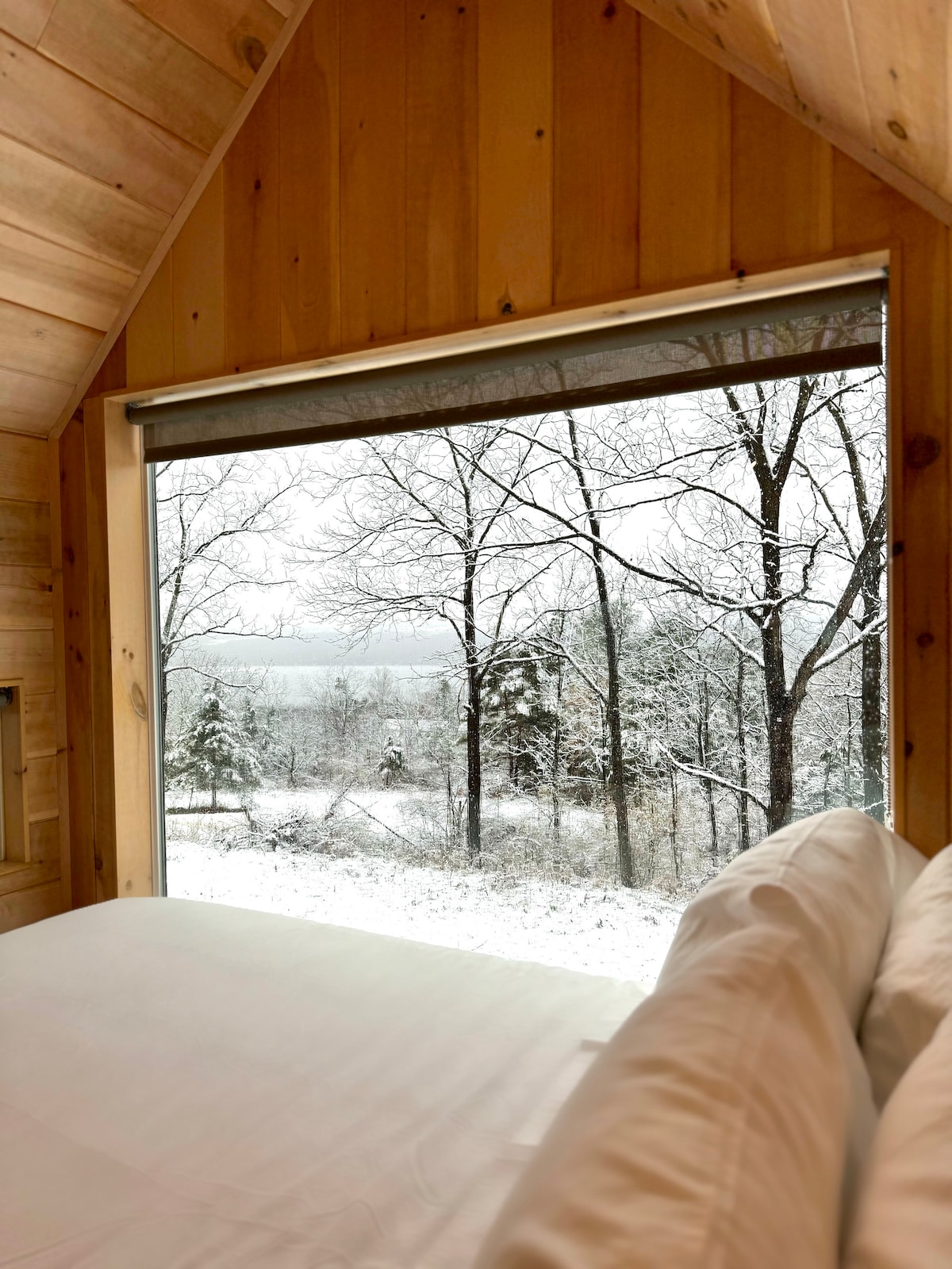 A beautiful slice of nature and unique cabin on 30 acres of land with modern ammenities. Enjoy distant views of hills through huge windows overlooking a swimming pond. It's a retreat for every season, featuring beautiful fall folliage, hiking, cross-country skiing and a lush and picturesque spring and summer. The house features a round kitchen and bedroom with a vaulted ceiling. Enjoy a giant view of the sky, fire pit by the pond, the sound of frogs, meditate, relax, or … work!