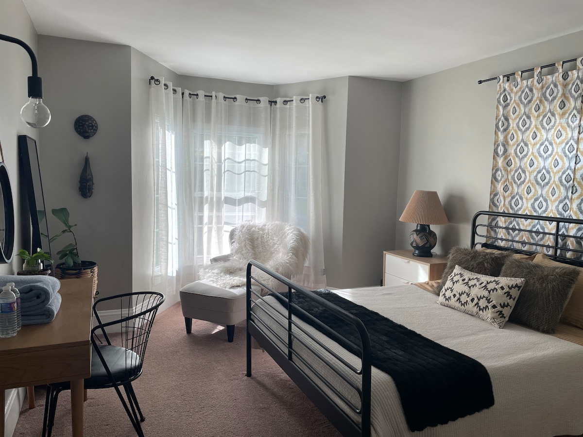 Take a step back in time and enjoy your getaway in this beautiful mid century modern suite. Equipped with a Sleep Number queen size bed for a great nights sleep! This spacious home gives you all the room to unwind in its peaceful surroundings. Relax on your private deck watching the sunset. On a cool fall day cozy up to the wood stove or take advantage of your own private indoor sauna. The MCM Suite is in a perfect location to explore all the area has to offer:wineries, waterfalls, and much more