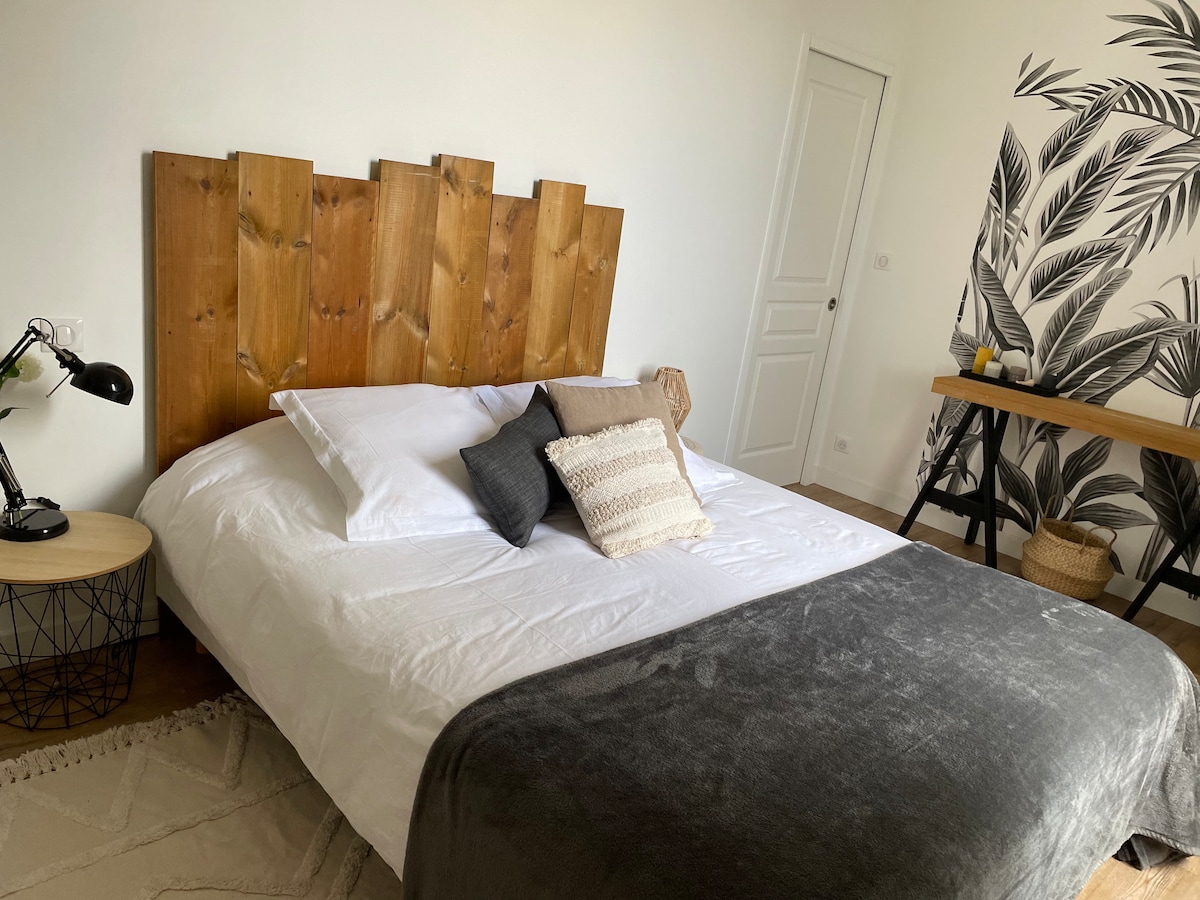 A l'étage de notre maison Charentaise vous disposerez d'une chambre avec un lit de 140 par 200, ou modifiable en 2 lits de 90. La salle de bain est à partager avec les propriétaires. La chambre est louée sans les draps ni les serviettes, pour vous permettre d'avoir un tarif réduit. Si vous avez besoin de draps et de serviettes c'est possible avec un supplément de 8€. Petit déjeuner avec supplément 6€ par personne. Merci de nous le préciser lors de la réservation.