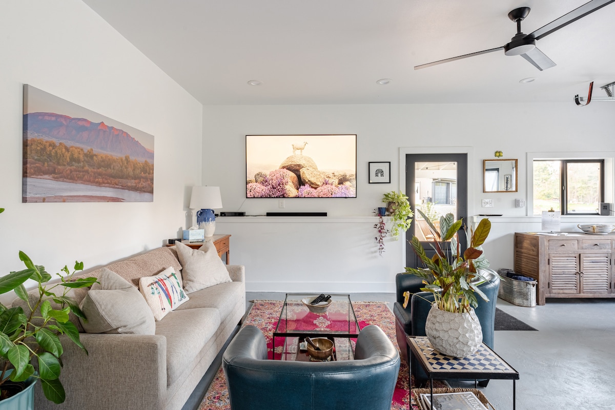 This brand new space will accommodate your group of 4 with every creature comfort. We are pet friendly with pre approval and a fee. The full kitchen is well stocked with everything to make a great meal. Enjoy your meal on the shaded patio. The beds are high quality and comfy. The internet will support video conferencing. We monitor the outside of premises with Ring security cameras. Please read our house rules for all details prior to booking