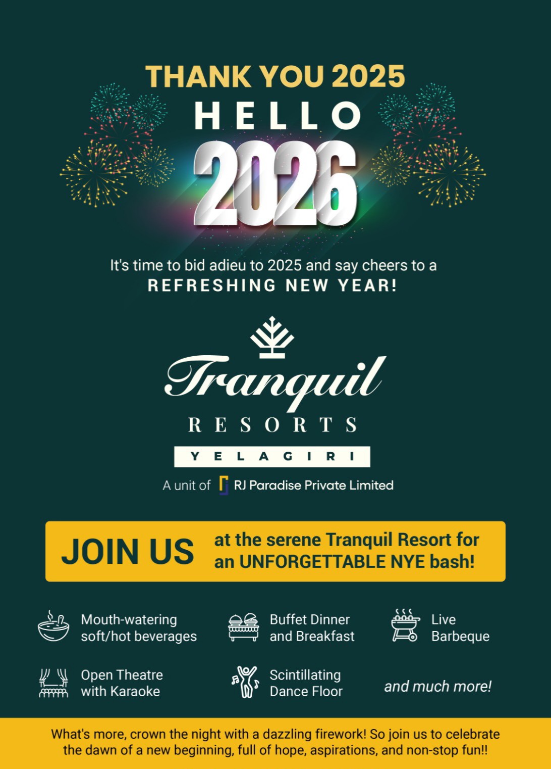 Discover Villa Singapura in Yelagiri, India, blending modern Singaporean architecture with comfort. 2 bedrooms, 2 baths, open kitchen, living room. Enjoy a BBQ, campfire, games, kids' play area, lawn, deck, and swing. Safety with CCTV, security guard/care taker, free WiFi, and 24 hours power backup. Ideal for families, friends, couples, and small events.