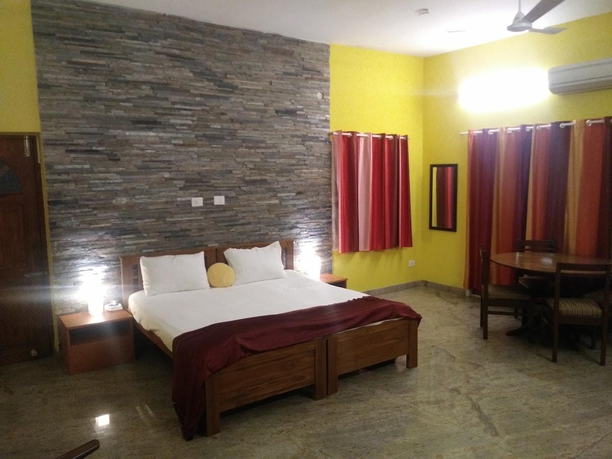 King Size Bed n Breakfast with tasteful Interiors. Quiet n Cozy bedroom with a living room and dining space , a fully furnished kitchen for a quick bite or a refreshing cup of coffee to perk you up .Attached bathroom with hot shower to calm you after a long tiring day. Fuss free Staff with calm and helpful nature to ease your stay . Seaward Supreme -your go to destination for a quick break or a stay vacation for a change in your daily routine