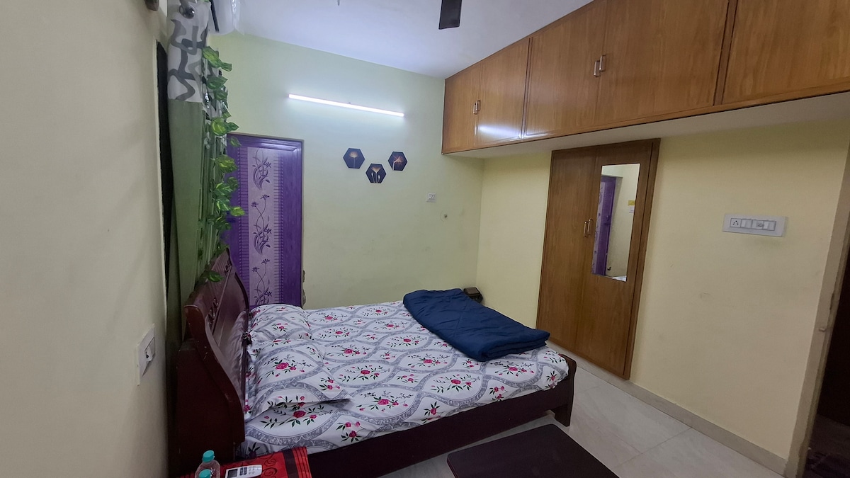 Neat and clean 2 Double Bed rooms, Hall and Kitchen. LPG Gas stove with 2 burner available and Electrical appliances for cooking facility. Clean cutlery and crockery. Round the clock hot water facility. Uninterrupted power supply with inverter backup for light and fans. 1 Km from Iyyappanthangal Bus depot, 2Km from Ramachandra hospital, 3 Km from Aravind Eye hospital, ACS Medical college hospital and Savitha Dental College. Home food available for lunch and dinner on chargeable basis.