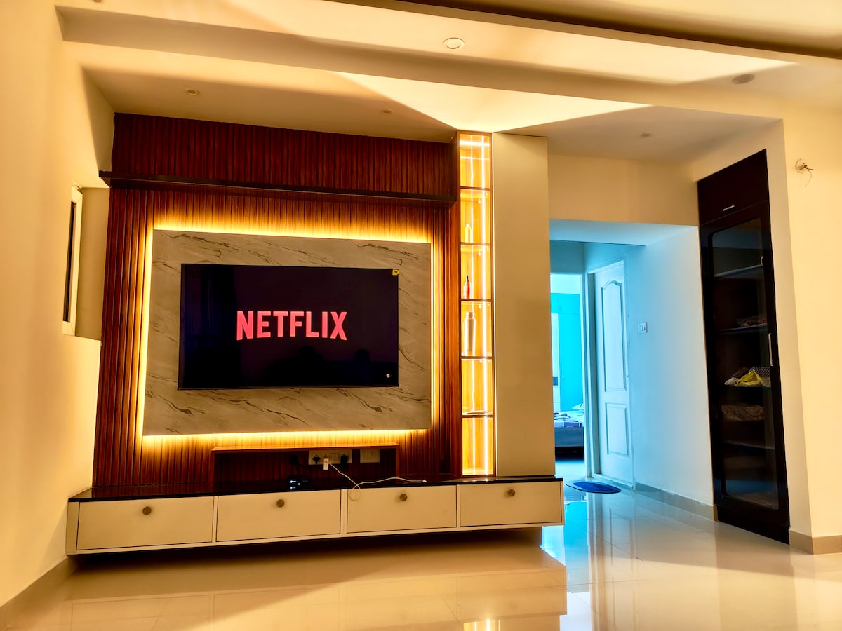 Summer-ready stay with power backup & AC in living & bedroom 🎬 Private HomeTheatre with FireTV projector + sound system 🏖 5-min walk to beach & close to OMR IT offices 🌐 High-speed Wi-Fi + dedicated workspace + inverter backup 🛏 Sleeps 4 comfortably(double bed + floor mattress) ❄️ Furnished: AC, heater, fridge, washing machine, induction stove, RO water & self check-in 👥 Perfect for couples, friends, small families, OMR IT employees, NRIs, business travelers & international guests