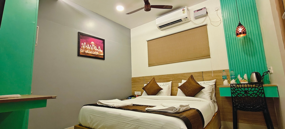 Our Deluxe Room offers a spacious and inviting retreat, perfect for those seeking a touch of luxury during their stay. With a generous 160 square feet of space, this room is designed to provide maximum comfort and relaxation. Enjoy ample room to move around and unwind , Sink into our plush beds for a restful night's sleep , Experience the convenience of modern amenities, including , flat-screen TV, Wi-Fi, Air conditioning , Room Lightings.