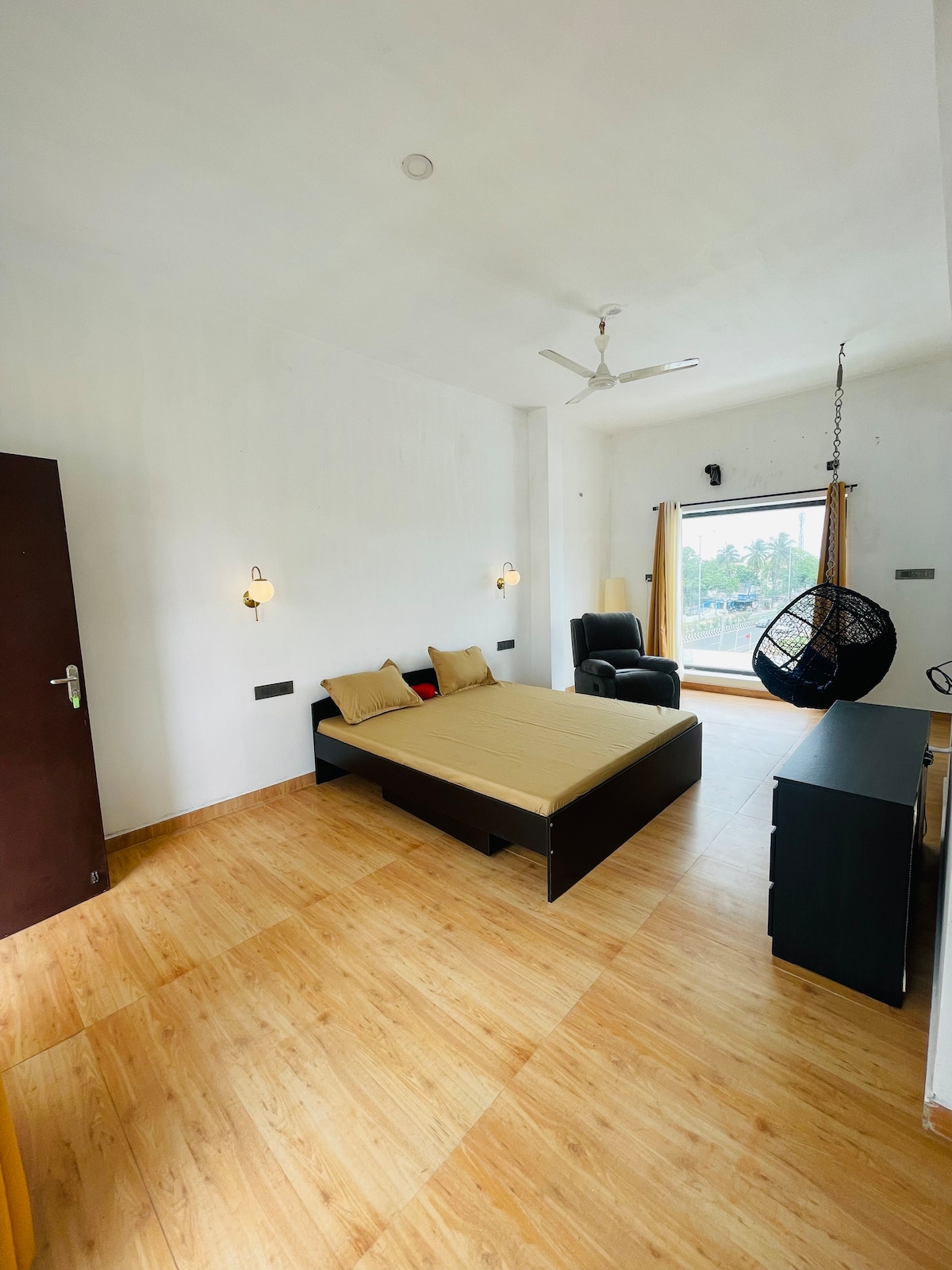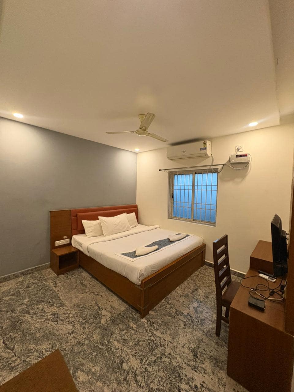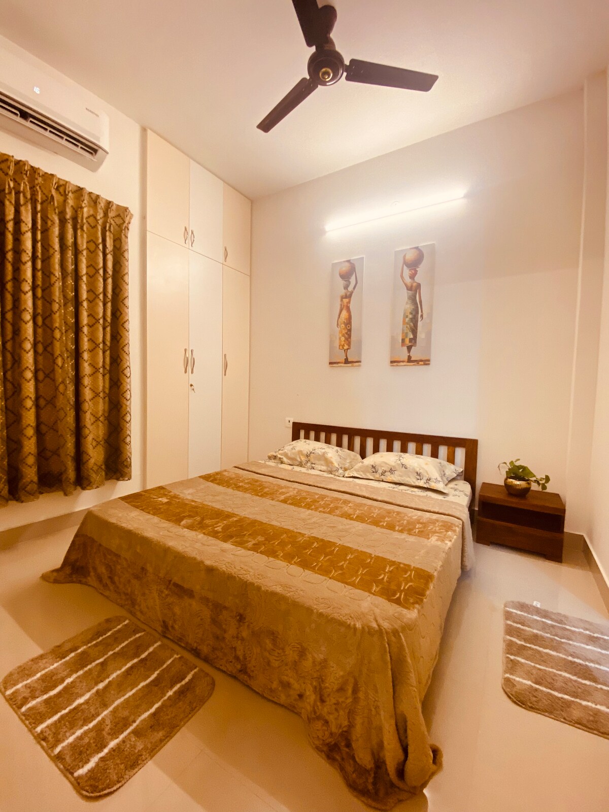 Welcome to our Barcelona-themed 2 BHK lake view apartment in Chennai! Perfect for families, couples, or business travelers. Enjoy stunning lake views from the living room and bedrooms. Fully furnished with rustic wood furniture and all amenities including a cozy living area, equipped kitchen, oven, washing machine and two air-conditioned bedrooms with wood accents. High cleanliness standards with fresh bed sheets, toiletries, and towels. Prime location close to many malls, companies and beaches!