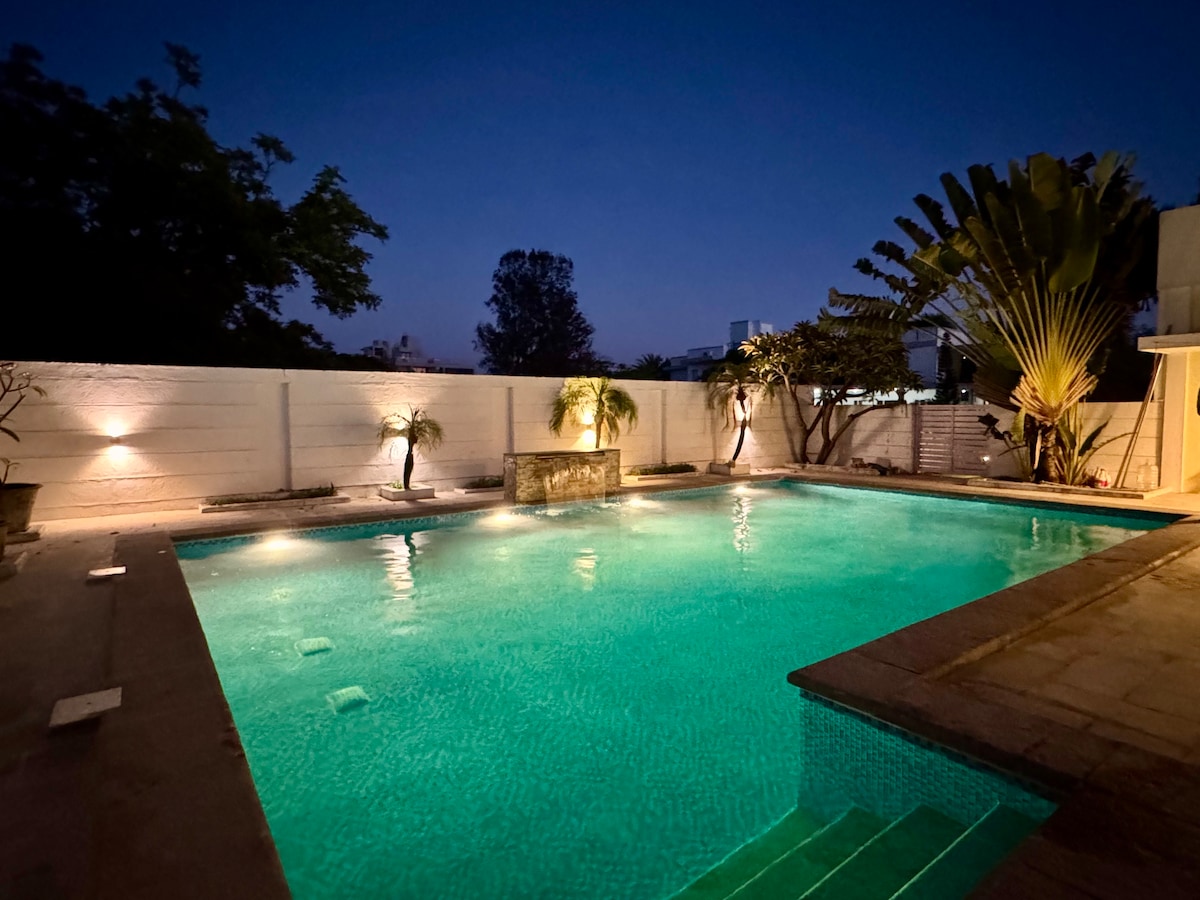Welcome to our spacious 4BHK retreat! Enjoy a comfortable stay with 1 AC room on the ground floor and 3 AC rooms on the first floor,accommodating up to 30 guests. With 6 bathrooms with heaters, a big hall for events,and a fully equipped kitchen. Dive into our adult pool (3-5 to 5.5ft) the kids' pool (2ft), and take advantage of our large lawn with seating. Enjoy indoor and outdoor games, a BBQ setup, and the option for an in-house cook. With 24/7 power backup,Wi-Fi, and Ample parking,