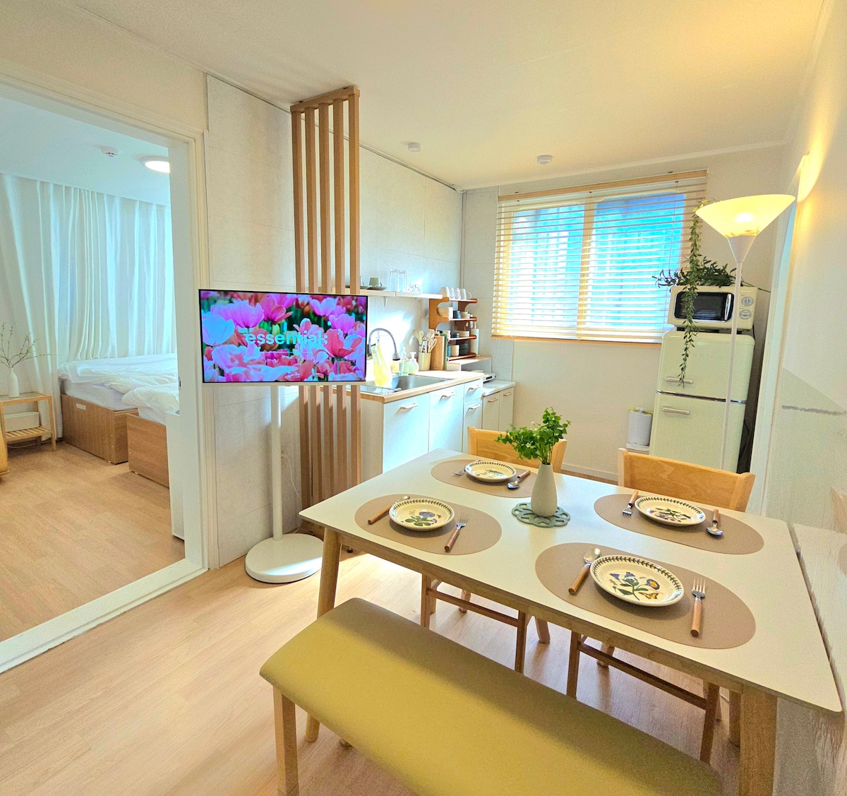 “조용한 로컬 스테이 / 장기숙박 추천” 사가정역 도보 2분, 조용한 주택가에 위치한 2베드룸 숙소입니다. 다다미 마루 거실과 무료 주차, 셀프 체크인으로 출장, 가족 방문, 장기 숙박에 특히 잘 맞는 공간입니다. Just 2 minute walk from Sagajeong Station with easy access across Seoul. 2 bedrooms for up to 4 guests, with self check-in and free parking. Ideal for families, friends, or business travelers.