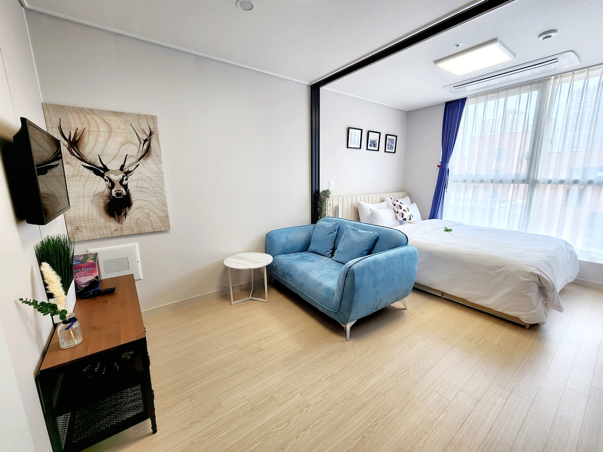 서울에서 가까운 인천 서해 바다의 너른 풍경, 빠듯한 일상 속 잠시 쉼이 필요할 때 놀러오세요 :) 깨끗하게 관리하고 있습니다. 바다와 초록 공원이 내려다보이는 야외 테라스 통유리창으로 바라보는 시원한 오션뷰, 쾌적한 레지던스 복층 원룸 숙소 ▪️인천공항 자동차 15-20분 ▪️인스파이어, 파라다이스, 을왕리 해수욕장 등 주요 관광지 자동차 25-30분 ▪️구읍뱃터 선착장 2km 자동차 5-7분 ▪️상가 중심 지구, 도보 5분 이내 식당, 카페. 건물 1층 편의점 ▪️넷플릭스 ▪️기준 2인-최대 4인 (2인 초과 시, 추가 비용 있음) ▪️이용시간 - 체크인 : 오후 4시 - 체크아웃 : 오전 11시 *얼리체크인/레이트체크아웃은 추가 비용 및 스케줄 조율이 필요하니 사전문의 부탁드립니다. ▪️반려동물 동반 불가 ▪️실내 흡연 절대 금지 ▪️삼겹살 바베큐 불가, 고기/생선/새우 굽기 불가 ▪️주차(1대 무료) - 건물 B1~B4 /주차장-숙소 연결 (2대 이상 추가 비용)