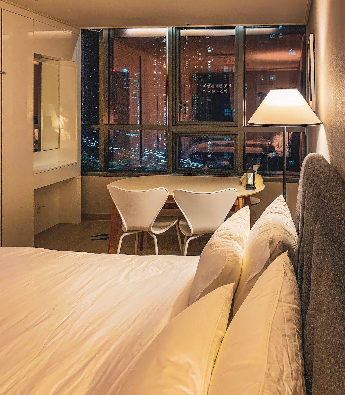 안녕하세요. 가끔 육아에 지칠 때 평일에 쉬러 가는 곳입니다. 휴식의 목적과 재미로 하는 곳이기에 아낌없이 셋팅했습니다. 레지던스 호텔의 편의시설(수영장, 사우나, 헬스장, 골프시설)과 가정집의 풀옵션을 동시에 느낄 수 있는 곳입니다. 최고급 호텔 침대와 침구류로 편안하고 안락한 잠자리를 제공합니다. 75인치 대형 TV, 로봇청소기, 공기청정기, 제습기, 음식물처리기, 의류건조기, 커피머신, 얼음제빙기, 스피커 등 최신 전자제품이 구비되어 있습니다. 또한 완벽한 조리를 할 수 있는 조리도구 또한 갖춰져 있습니다. 몸만 오시면 됩니다. 송도의 유일한 평점 5점인 제 객실에서 편안한 여행 보내셨으면 합니다. 많은 이용 부탁드립니다. 감사합니다.