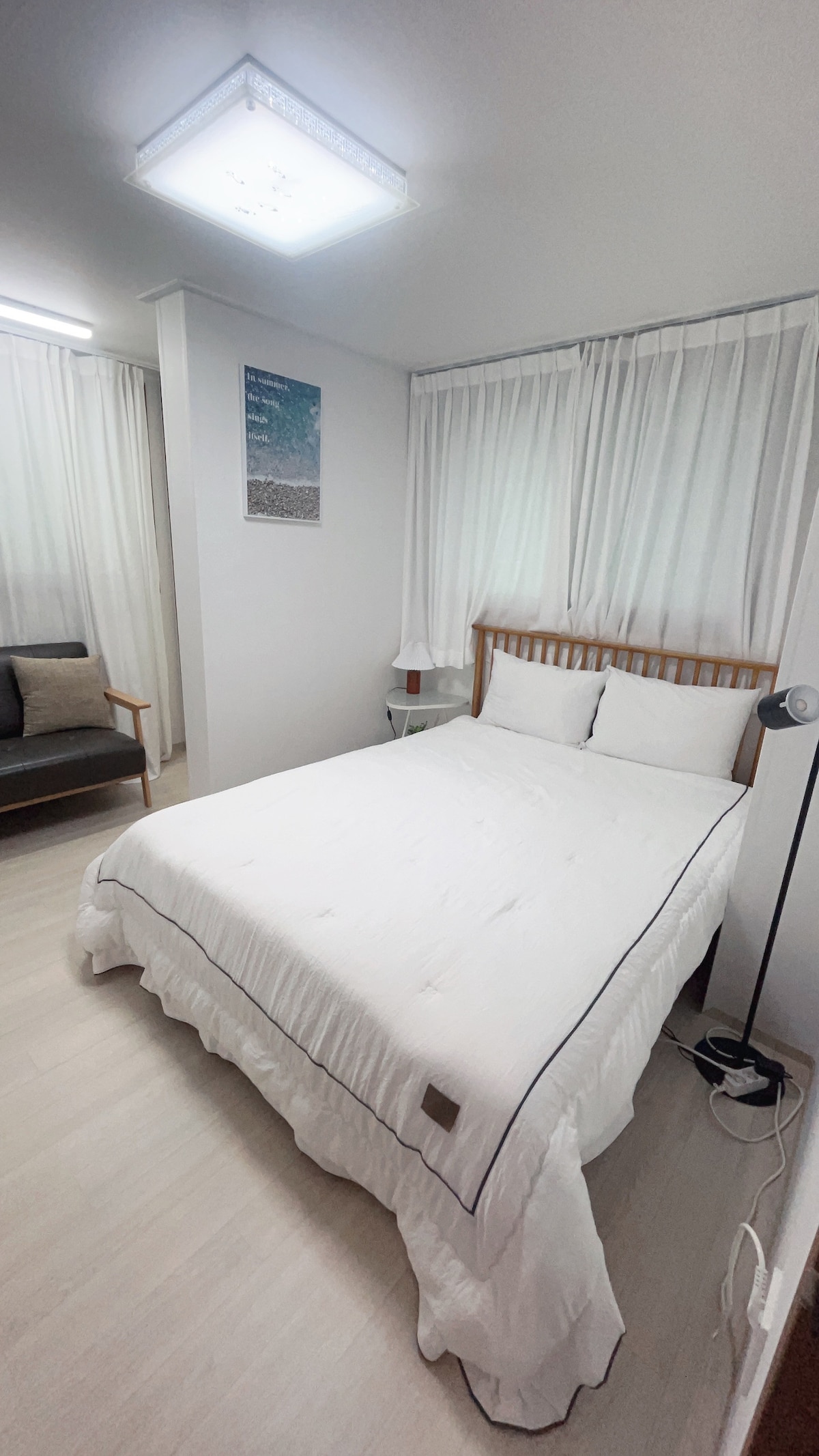 【sun house】#영일大车路7分钟#4张标准双人床#浦项房源#Netflix#免费停车#最多12人