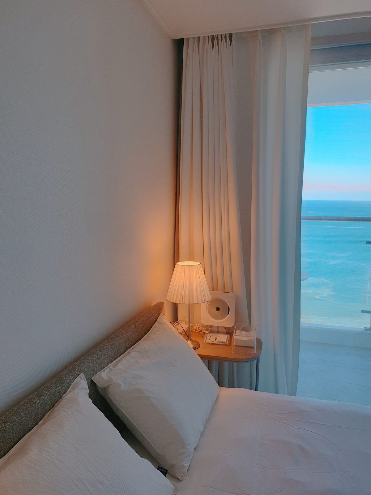 From the terrace, you can fully enjoy the ever-changing beauty of the East Sea, including the sunrise and sunset, with unobstructed ocean view. To enhance your stay, we provide Netflix w/ 65" TV and Harman Kardon Bluetooth speaker. If you connect the game console, you can enjoy over 3,000 nostalgic games. We have various lighting and blankets prepared to create a romantic atmosphere indoors and outdoors at night. For a comfortable sleep, we provide hotel-style bedding and blackout curtains.