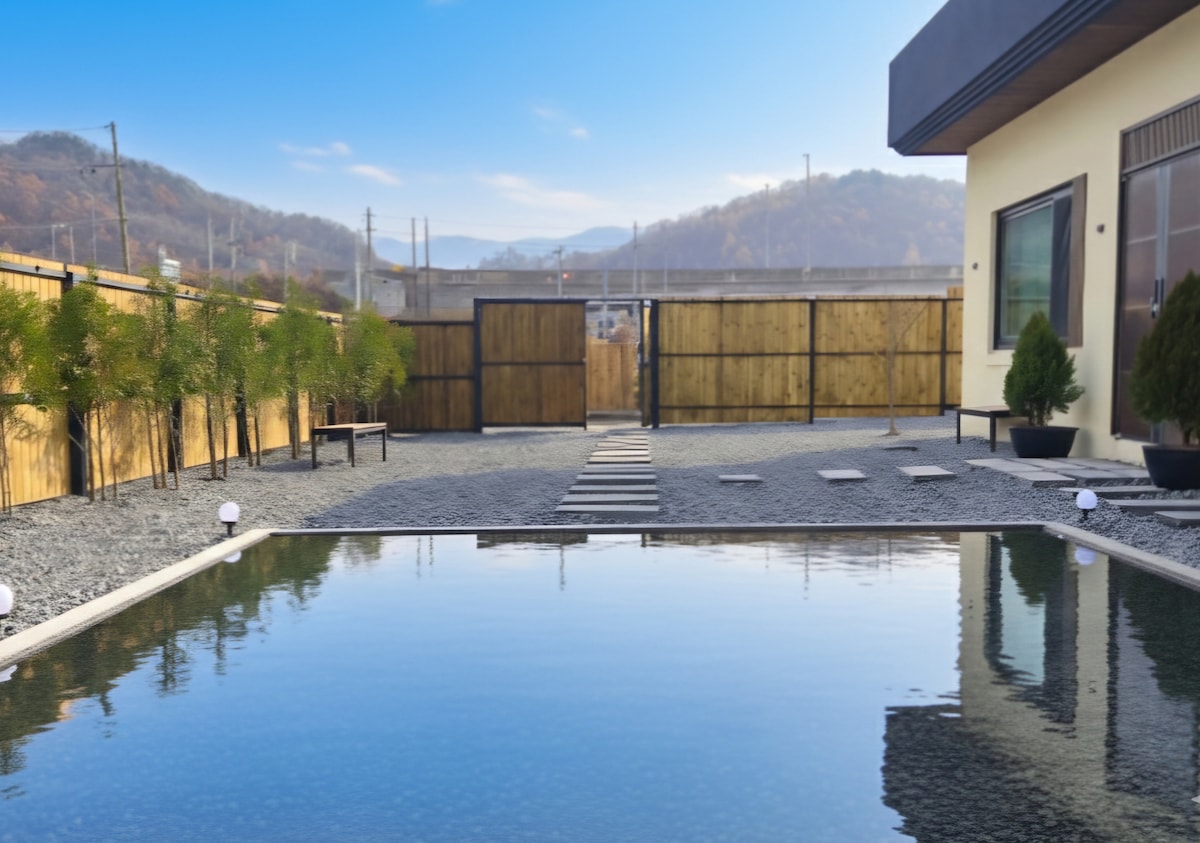 忠州独立式私人住宅, 按摩浴缸(免费)、露营氛围、池塘水景,在文江度过充实的一天