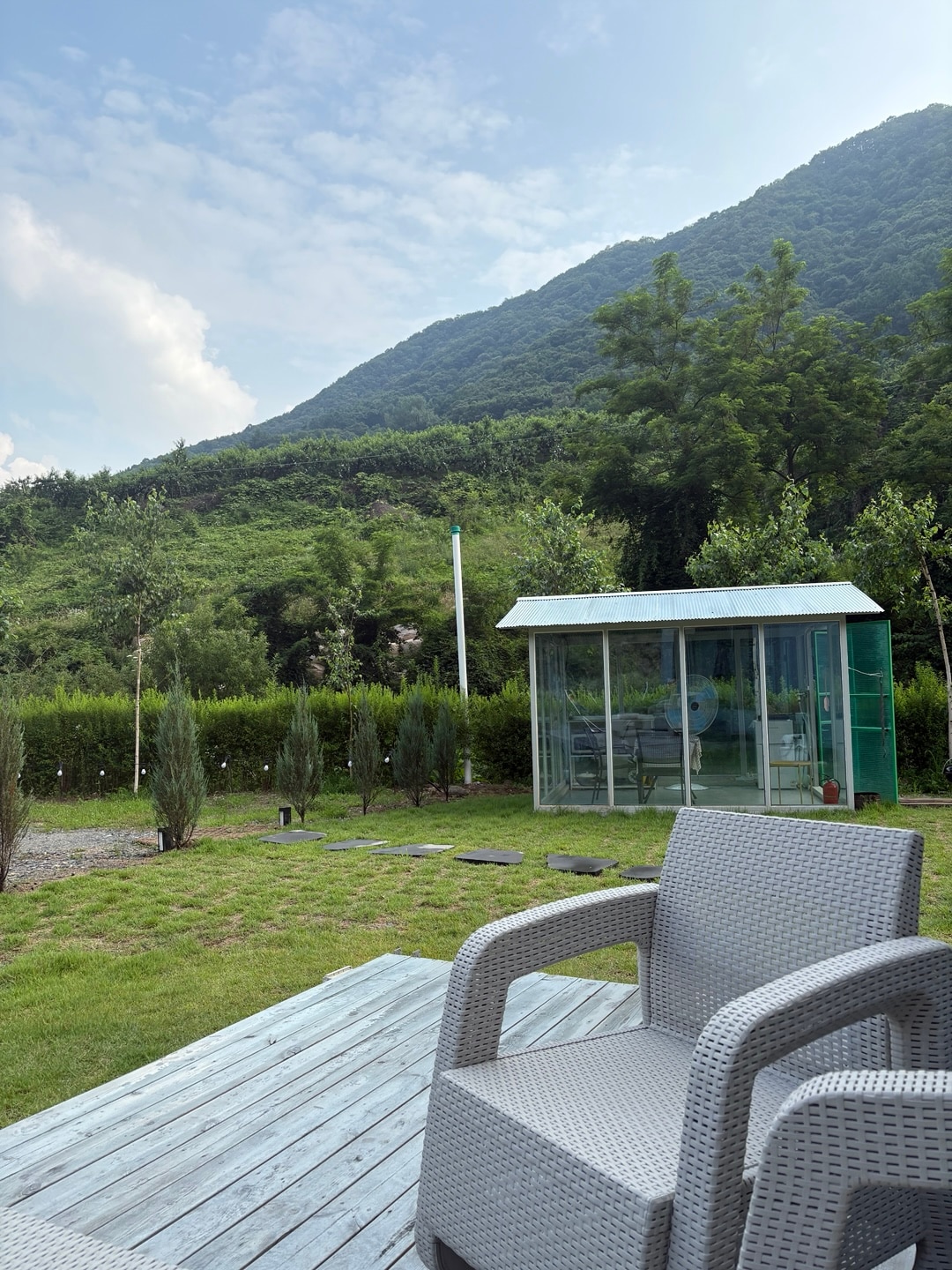 位于神井湖畔的独特小屋 这座别致的农舍位于牙山市神井湖旁,经过精心改造,融合了温馨与时尚。牙山市有丰富的旅游资源,如Pinnacle Land、公世里圣堂、外岩村、民俗博物馆、温泉和灵仁山滑索等。距离小屋仅100米的神井湖于2025年被指定为忠清南道首个地方庭园公园,是全年适合散步和慢跑的地方。湖周围还有许多餐厅和咖啡馆,让您尽享城乡结合的独特魅力。 这间小屋与房东居住的区域(A区)位于同一栋建筑内,通过一扇开合门分隔,确保互不干扰。客人专属的B区拥有独立的入口以及连接果园的露台。露台设有凉亭,您可以尽情享受宁静的乡村氛围。室内采用开放式设计,设有大窗户、6人餐桌、两张超单人床和宽敞的沙发,为您提供舒适的入住体验。