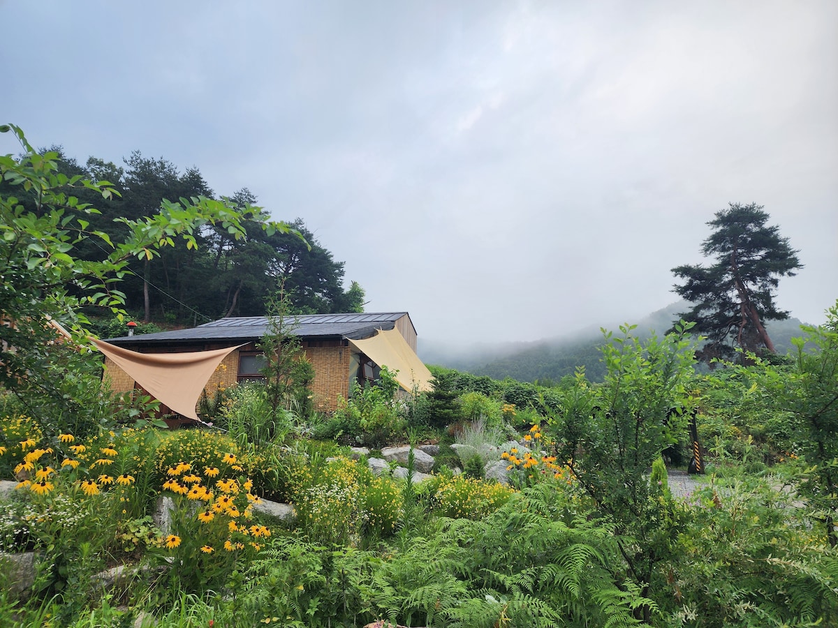 '솔바람 힐링하우스' 조용하고 예쁜 시골 독채입니다. 바쁜 도시생활로 지치신 분들께는 고요한 쉼으로 재충전할 수 있는 곳, 층간소음에 숨죽이고 답답한 아이들에게는 마음껏 뛰며 자연을 배울 수 있는 곳이 되길 바랍니다. *자연에서 가족단위로 힐링하기 좋은 곳으로, MT나 단체모임에는 적절하지 않습니다. 솔바람하우스의 가장 큰 장점은 집 앞의 넓은 친환경 자연주의 정원을 단독으로 누릴 수 있는 점이에요. 다양한 꽃과 나무는 계절마다 아름답습니다. 서울 강남에서 2시간 거리(교통 원활시), 충청북도 제천시 월악산이 마주 보이는 경치 좋은 곳에 있고, 집 앞에는 산에서 내려오는 1급수 냇가, 뒤에는 작은 동산 산책로가 있어요. 행복한 힐링&추억 만들고 가세요 *^^*