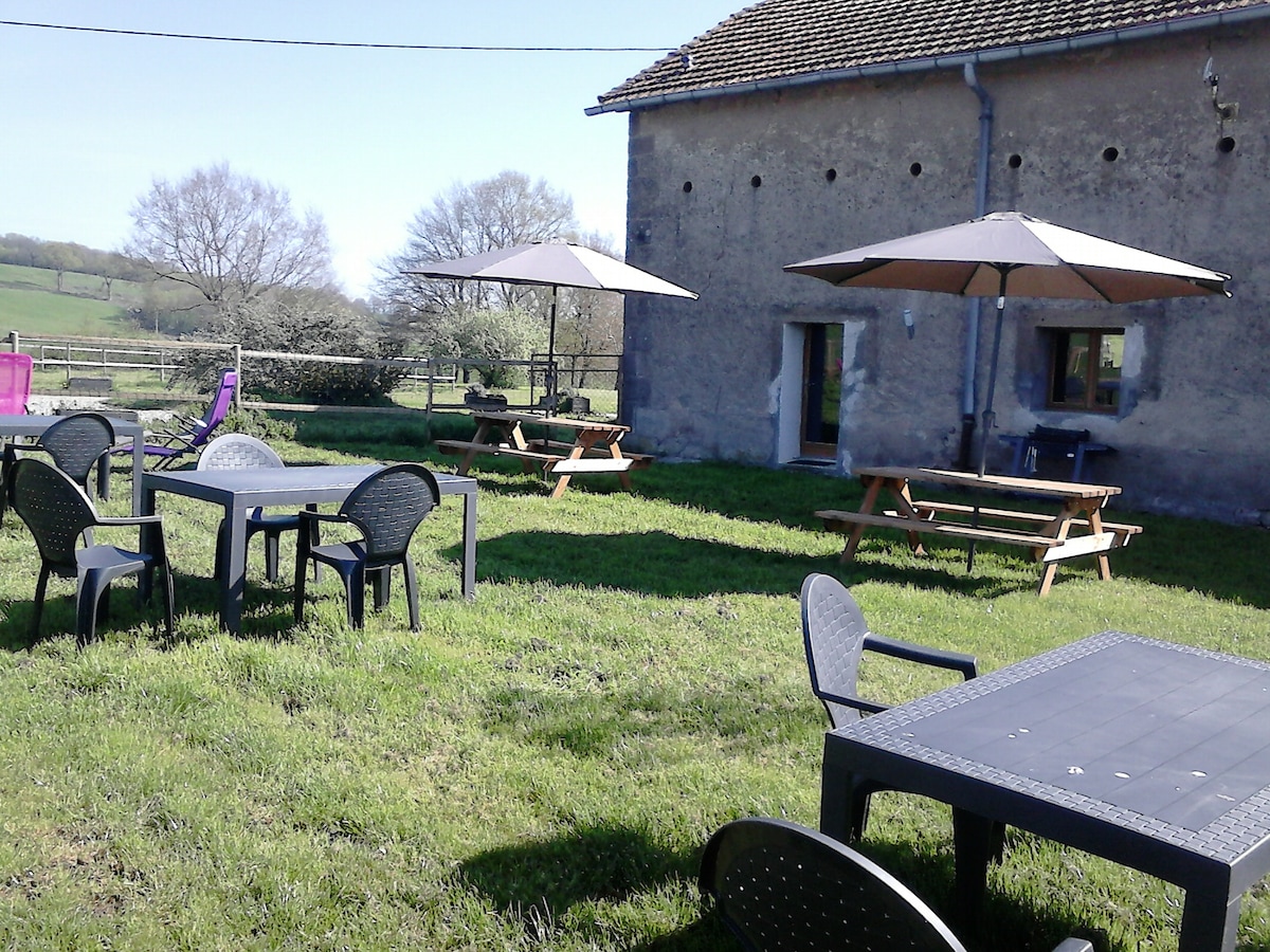 Situé dans un havre de paix et de verdure, vous serez séduits par le charme des lieux et le confort du gîte aménagé dans une ancienne grange indépendante de notre résidence. Avec une déco personnalisée dans une ambiance bucolique et reposante, c'est avec simplicité que nous vous recevrons. A votre disposition, un espace lecture avec livres et documents sur notre région, une salle de jeux avec baby foot, table de ping pong . Une terrasse indépendante avec salon de jardin , barbecue , transats.