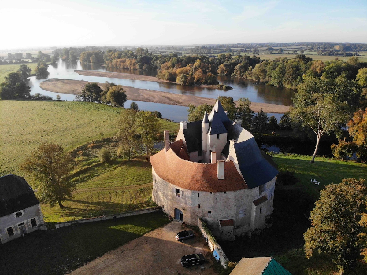 Château médiéval devenu château de plaisance, Meauce classé Monument Historique, est situé sur un petit promontoire rocheux au dessus de la rivière Allier. Vous serez charmé par sa forme ronde atypique, son authenticité, la qualité de sa restauration récente et son aménagement confortable et moderne. Situé sur le site naturel du Bec d’Allier vous profiterez d’un havre de paix en pleine nature. Et pour autant vous êtes situé à 10’ de Nevers ville préfecture et à 5Km du circuit de Magny Cours
