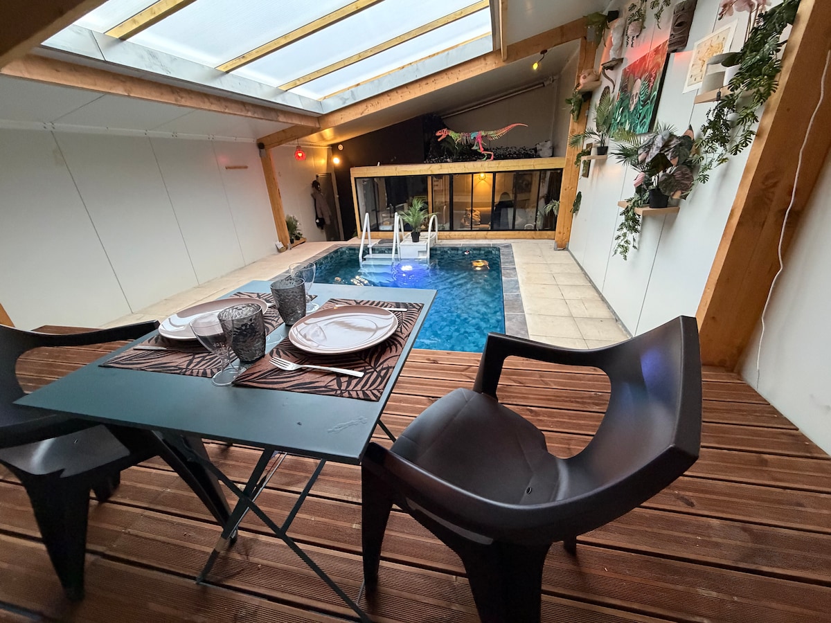 Posez vos valises pour une déconnexion totale. Laissez la ville derrière vous et détendez vous dans cet écrin unique dans la région. Une piscine chauffée sans aucun vis à vis pour 2 personnes maximum. Un petit havre de paix, une expérience unique. Eau chauffée (entre 24 et 30 degrés) , petit studio face a la piscine où vous pourrez boire une boisson chaude devant le grand écran en admirant les jeux de lumière qu’offre cette étendue d’eau, rien que pour vous, le temps d’une nuit.