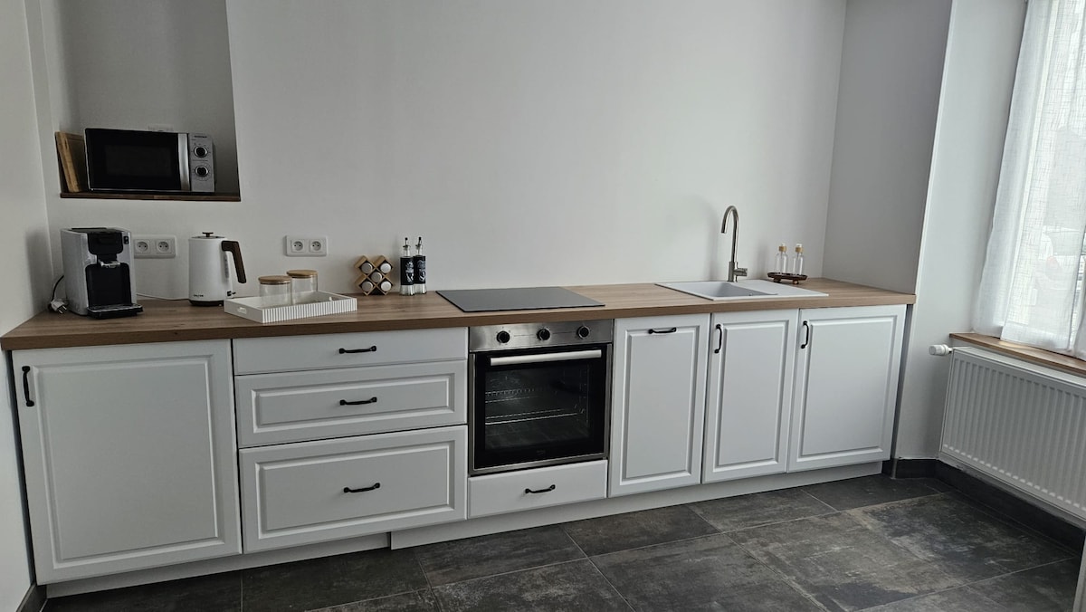 Profitez d'un logement élégant et central, tout se fait à pieds dans ce petit village médiéval, à 10 min en voiture de la forêt de Troncais, et des ballades ressourcantes. Repas maison, planches apéro, brunch dominical sur demande🤗 N'hésitez pas! Il n'y a plus qu'à poser vos valises dans cet appartement de 70 m2, cuisine équipée, salon , 1 grande chambre et une petite chambre pour 2 enfants avec lits gigognes. Prestations de qualité, lit 160 et matelas emma. A 20 min de l autoroute A71.