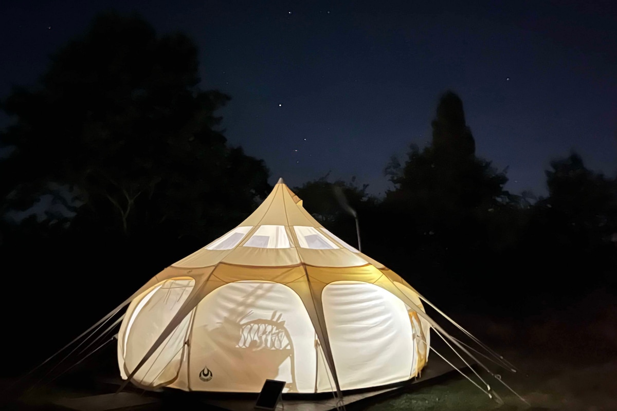 Venez faire une pause nature et vivre l'expérience du confort pourtant sans eau courante ni électricité. Avec le puits et les lampes solaires capables de recharger votre téléphone, vous avez le nécessaire. La tente est aménagée avec un lit king size 180 et peut accueillir 4 matelas supplémentaires. A l'extérieur, vous avez un coin détente, un espace pour cuisiner, une toilette sèche privative. Vous avez accès à la douche du cabanon de votre hôte. Les draps, serviettes, savons sont fournis.