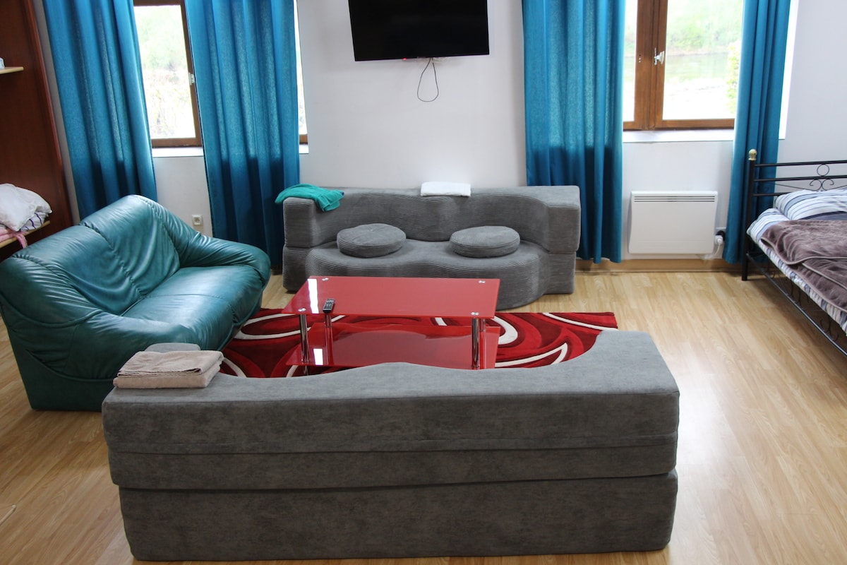 Bordering the Loire with panoramic views, vast garden level, 70m2, furnished tourist accommodation classified 3 stars for a capacity of 2 people, opening onto a 100m2 terrace and a garden with trees, with direct access to the Loire and the " Loire à vélo ". 3 rooms: kitchen opening onto living room with office area (excellent wifi), bedroom with 160cm bed and TV room. Bathroom with Italian shower, separate toilet. Bike rental, loan of 2 bikes, electric barbecue. Floor occupied by the owners.