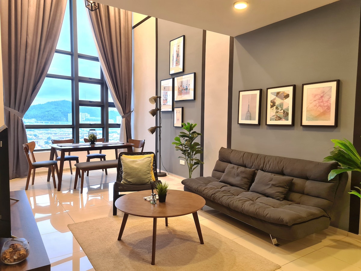 📍Pertama Residency Welcome to Grey City! This studio is newly set up with lots of love, combines contemporary decor with modern amenities and an experience all can enjoy especially Jacuzzi moment with your love & 100” projector screen w/Netflix. This unique place has a style all its own, it offers a cozy, clean, quiet & refreshing stay environment for couples. Come and experience in the Grey City! See you.