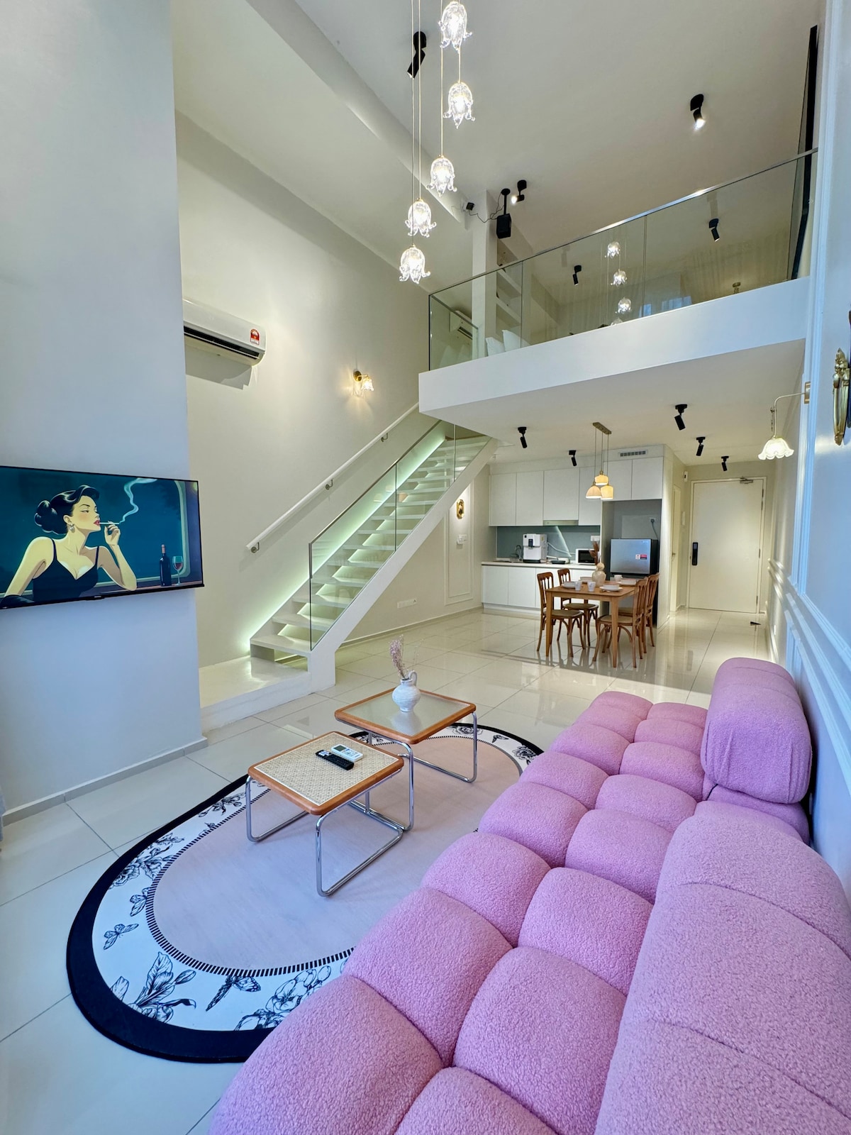 StarSuiteAC – Luxury Stay Above the Clouds! A luxuriously designed duplex on high floor, offering a breathtaking cloud-carpet view of the KL skyline. Relax under the galaxy-like starry ceiling and experience a staycation like no other! Enjoy a soundproof karaoke room, billiard & air hockey, and a home cinema with surround sound for a true movie experience. Facilities : kitchen, fridge, microwave, rice cooker, air-fryer, water filter, washing machine (with dryer), massage chair, etc.