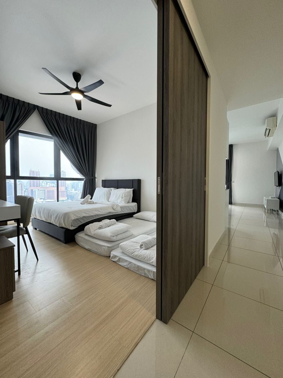 Sit back and relax in this calm, stylish space. Why Seashell suite at Lucentia Residence - Best views of KL - Beautifully decorated with a fun spirit - Centrally located & attached to public transit hub - Fast wifi - 2 TVs with Netflix & others - 2 gorgeous pools - Family friendly with baby crib & highchair - Gym, pool table, BBQ pits, piano - Garage parking - Recommended to Sleeps 6, max 8 person - LaLaPort Shopping Mall & the WOW entertainment street are attached - Grocery, drug store & Cinema