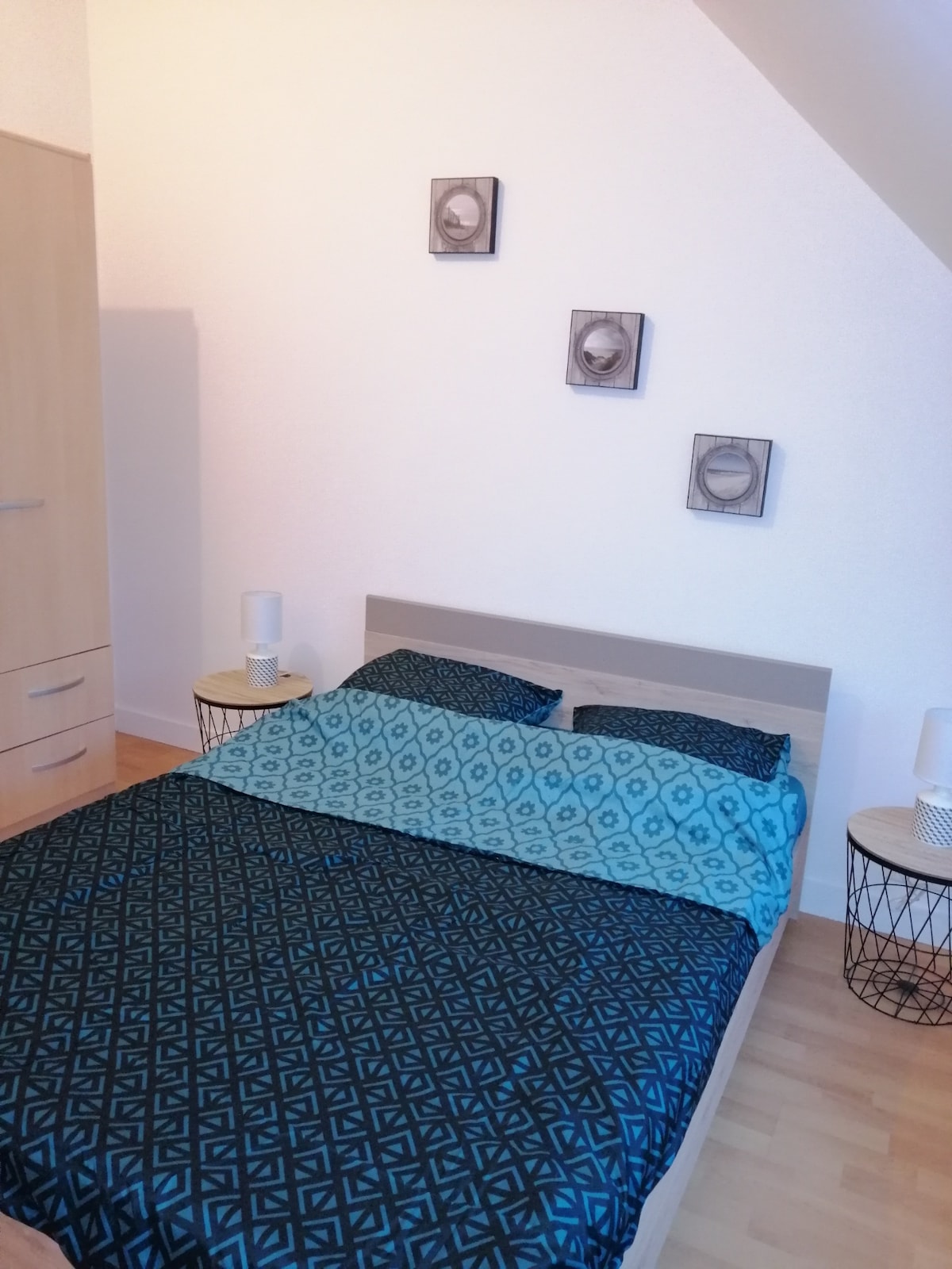Idéalement situé au coeur de la ville de Cherbourg ( commerces, parkings port, cité de la mer loisirs. le tout à pied)Cet appartement entièrement rénové et meublé de 38 m2, au 3 ème et dernier étage sans ascenseur, calme et lumineux, il est composé de deux chambres(1 lit double et 2 lits simples) un séjour salon et une cuisine entierement equipée (four,plaque de cuisson, machine à laver, télévision...) appartement sous comble, il dispose de grands volumes. linge de lit et de toilette inclus.